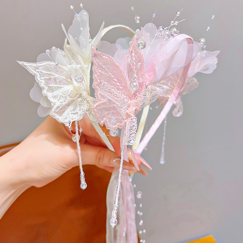 2# pink lace butterfly streamer headband