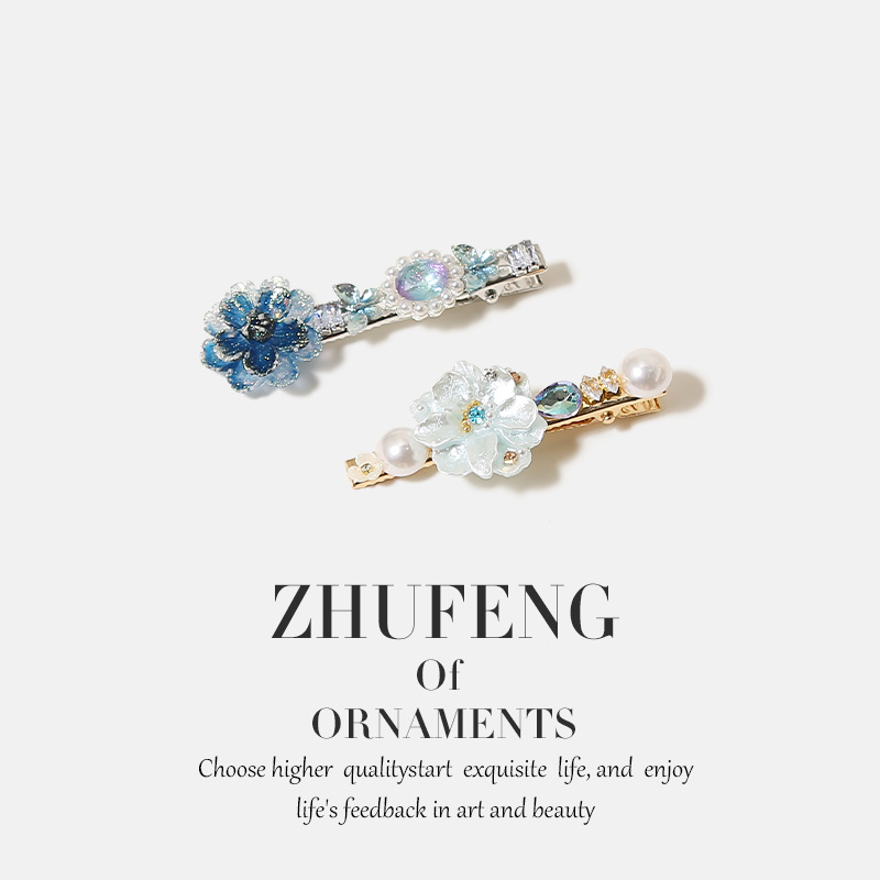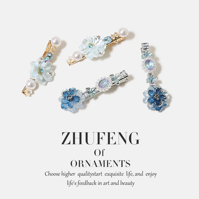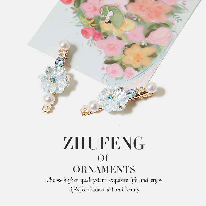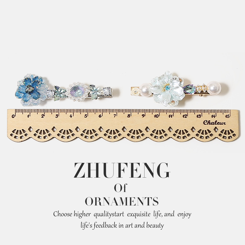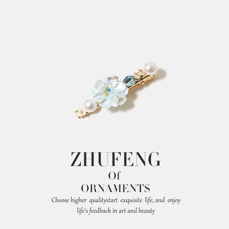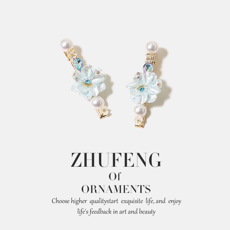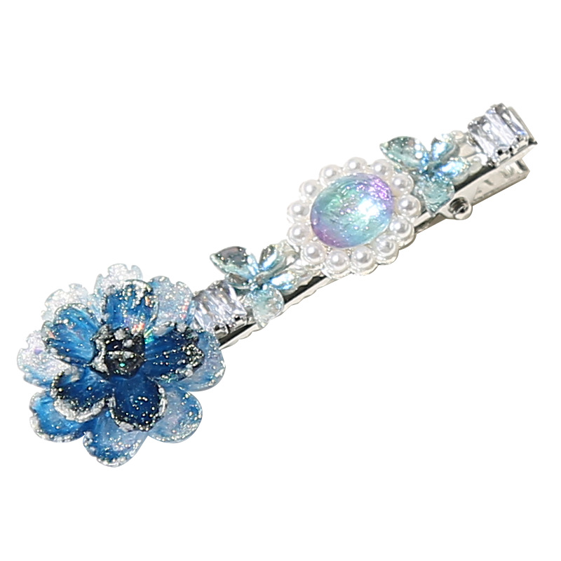 blue dainty flower pearl hair clip