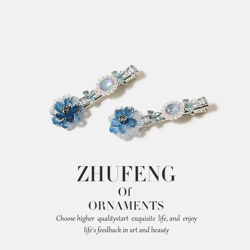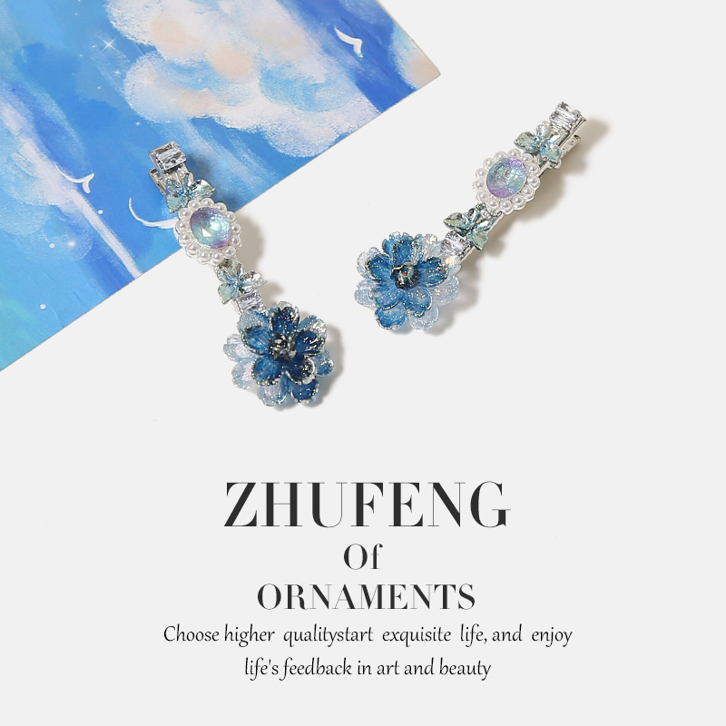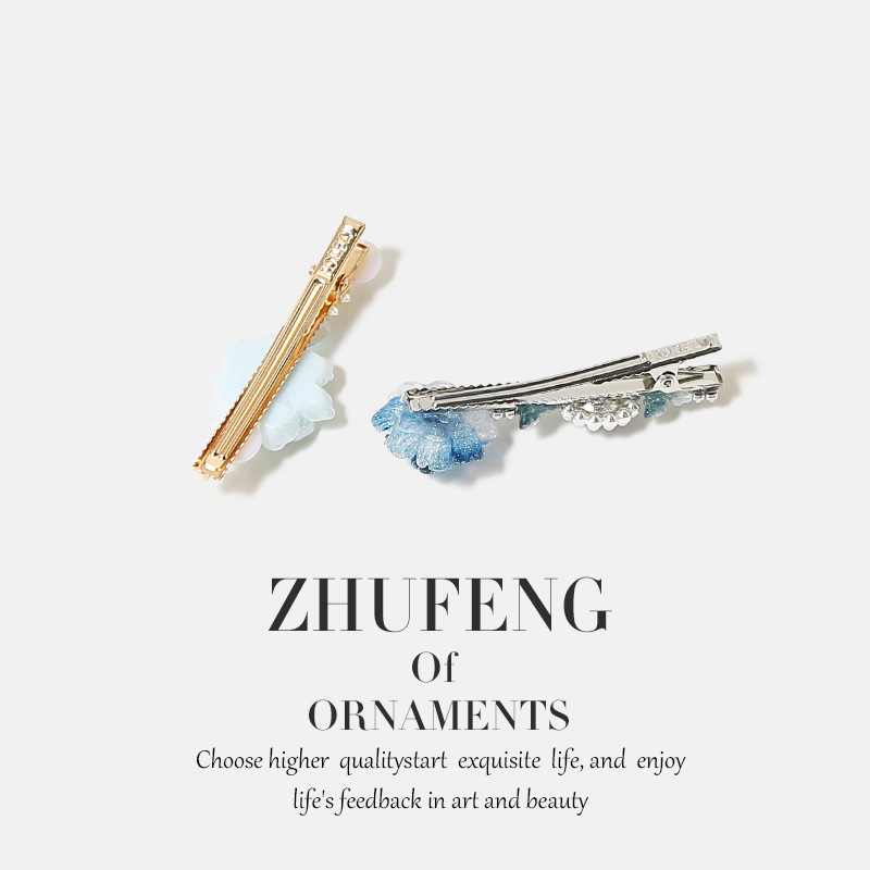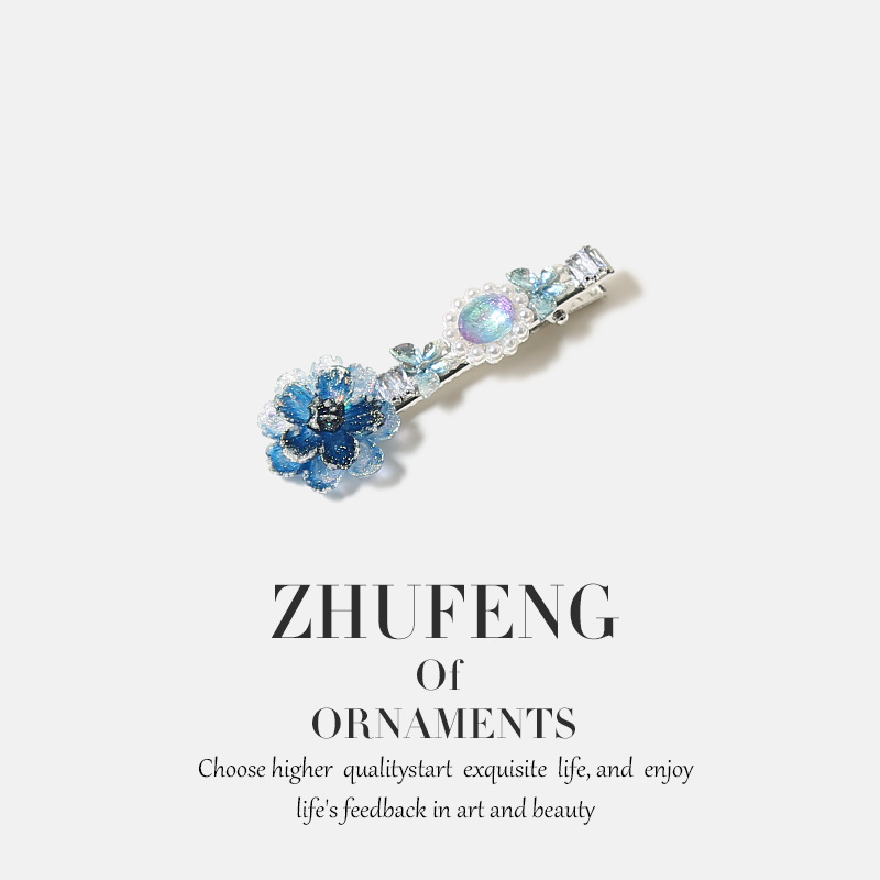 blue gradient flower rhinestone hair clip