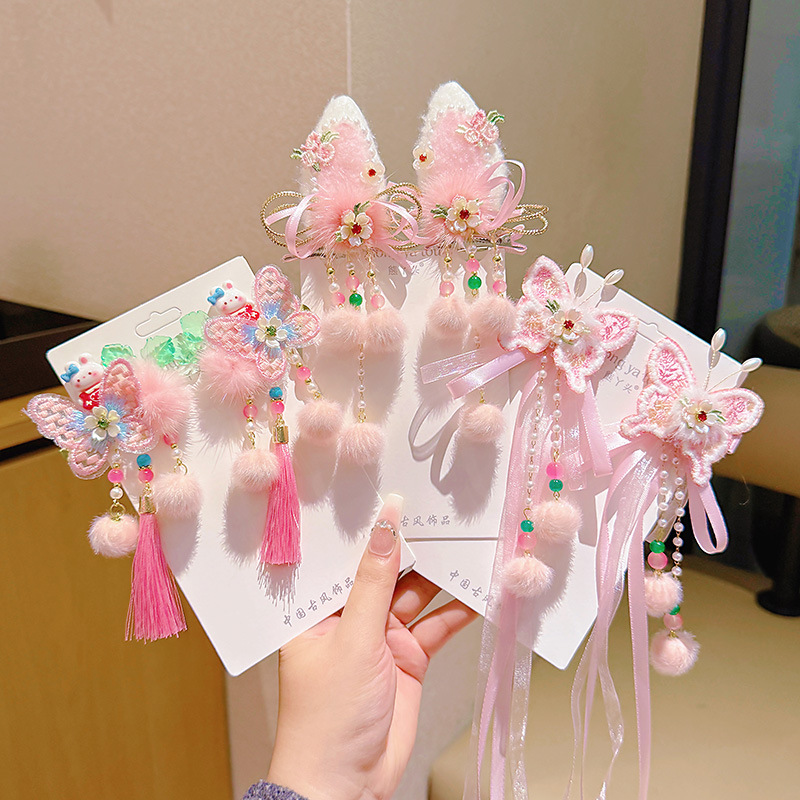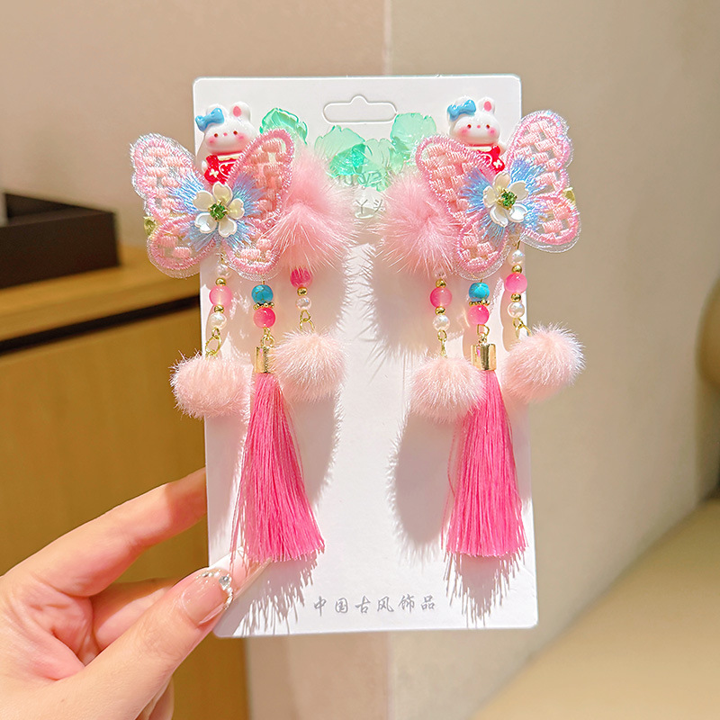 d1-1 pink butterfly tassel rabbit a pair of hairclips