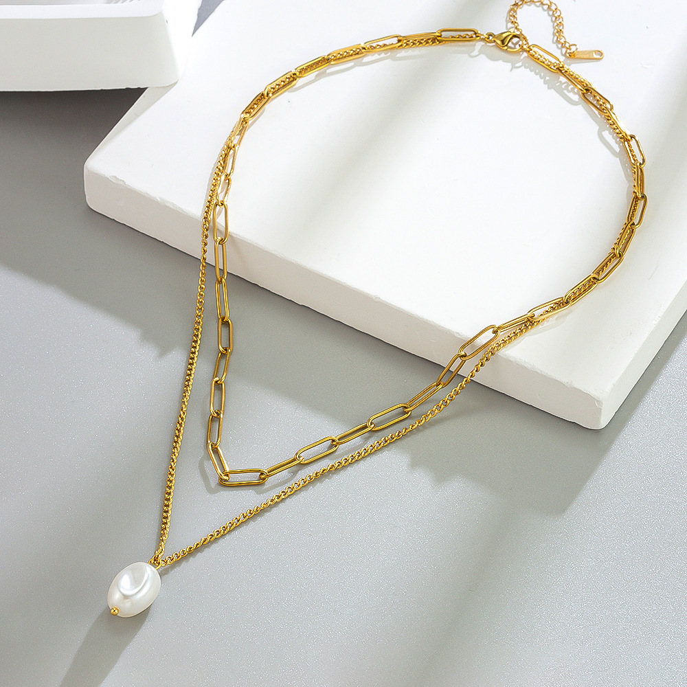 [86623] double-layer pearl necklace gold