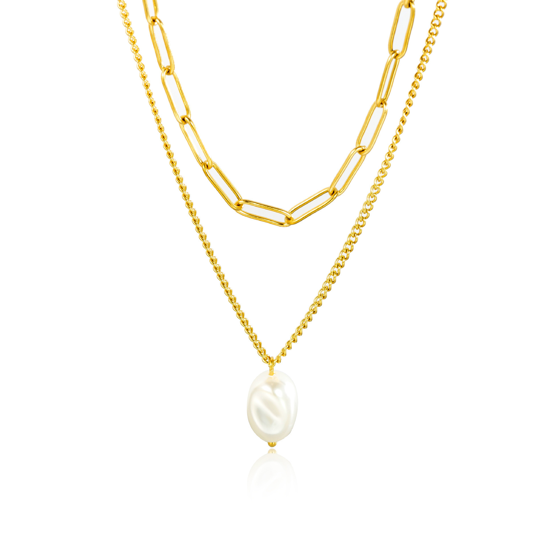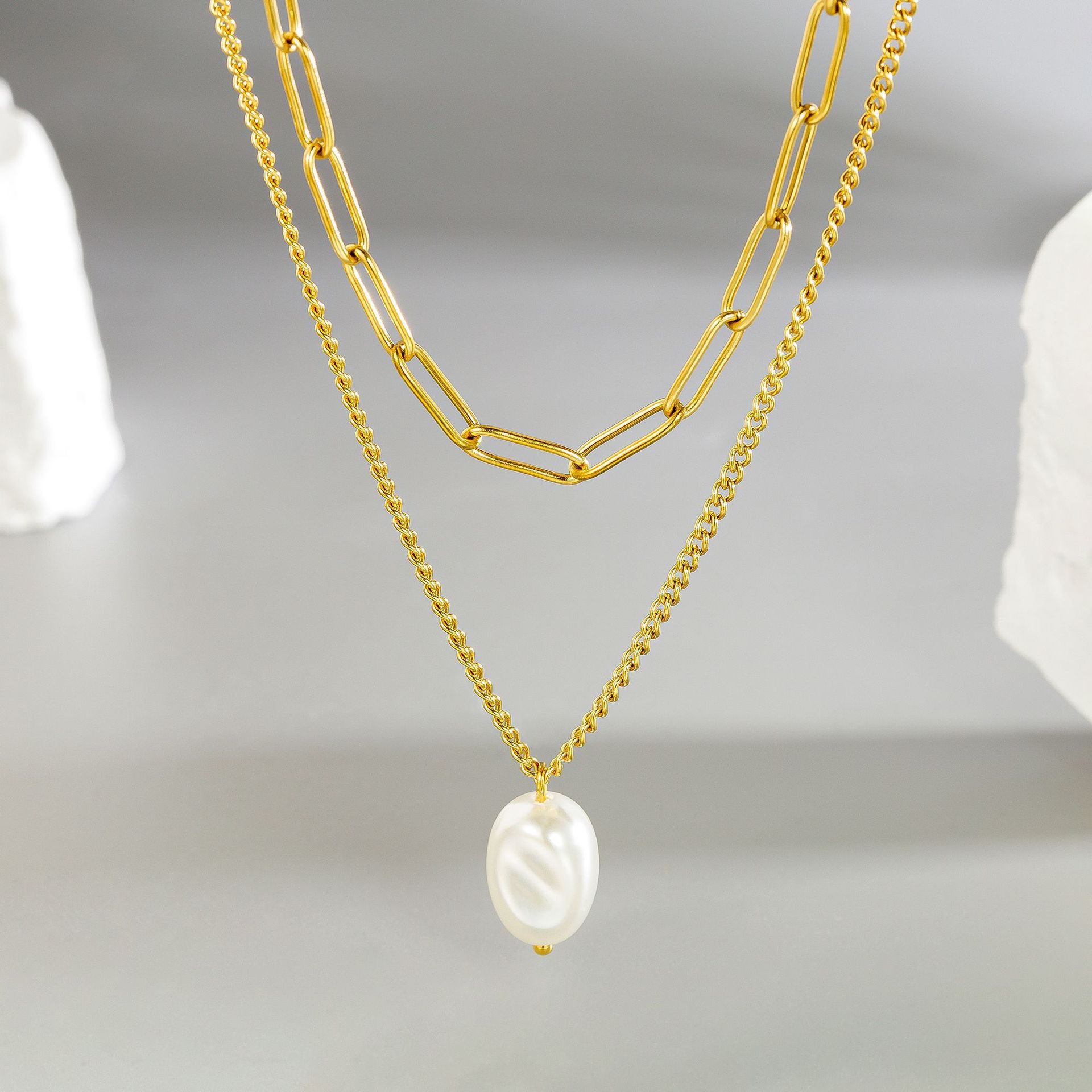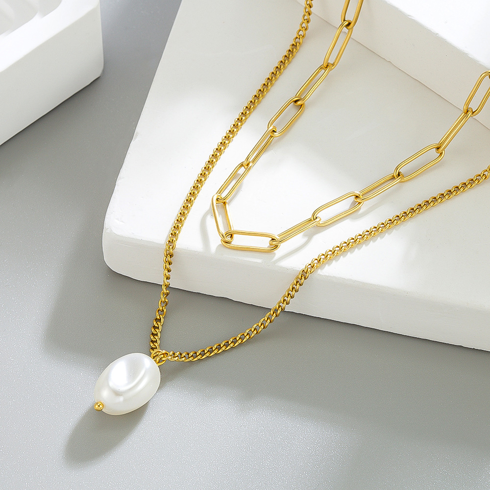 color: [86623] double-layer pearl necklace gold