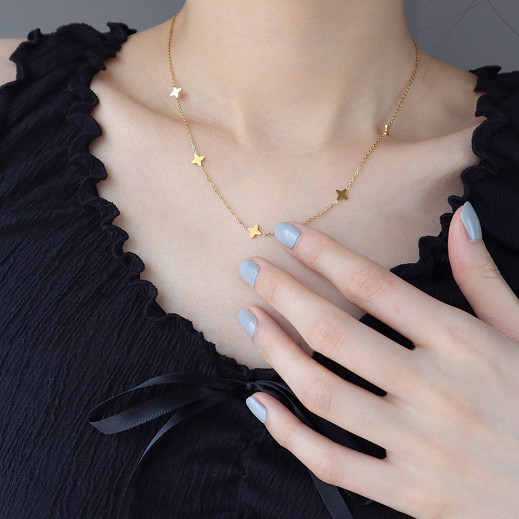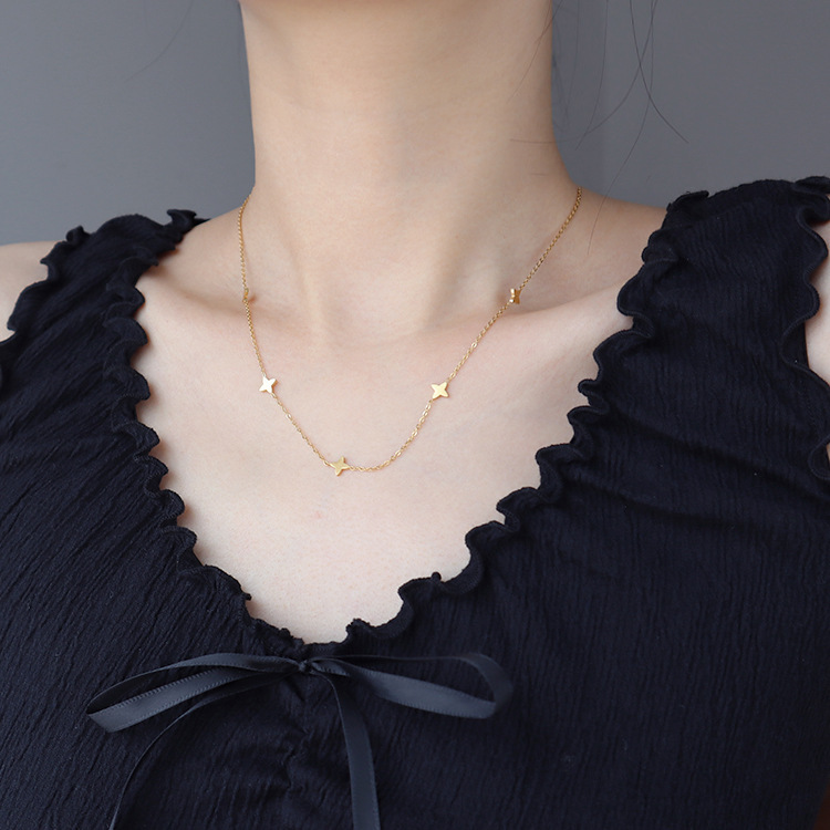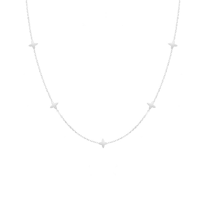yxp052 minimalist four-leaf clover necklace, steel color