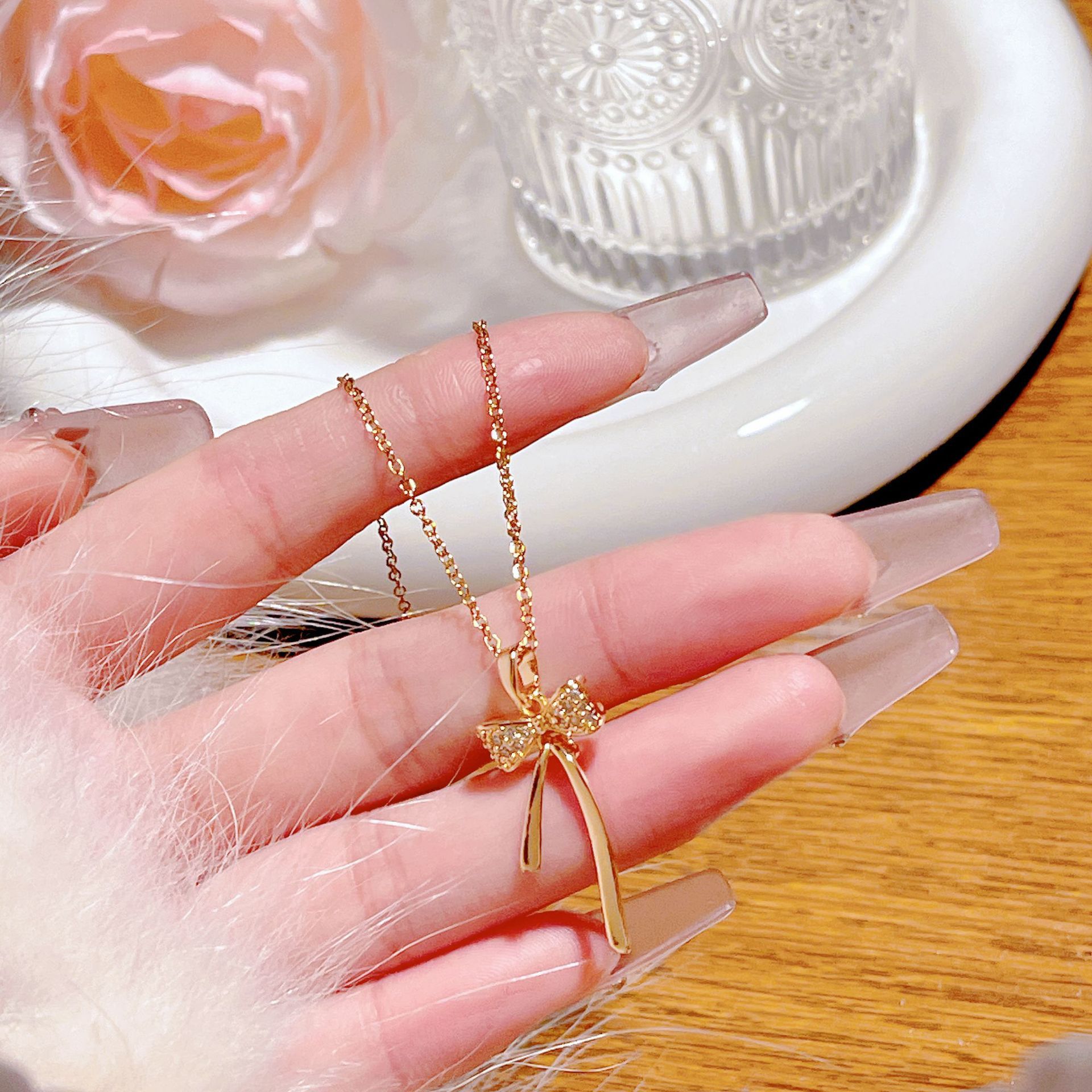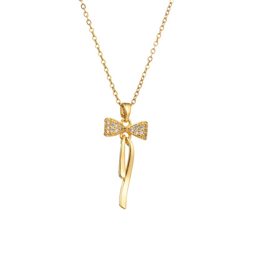 yxl9222 bow necklace gold color