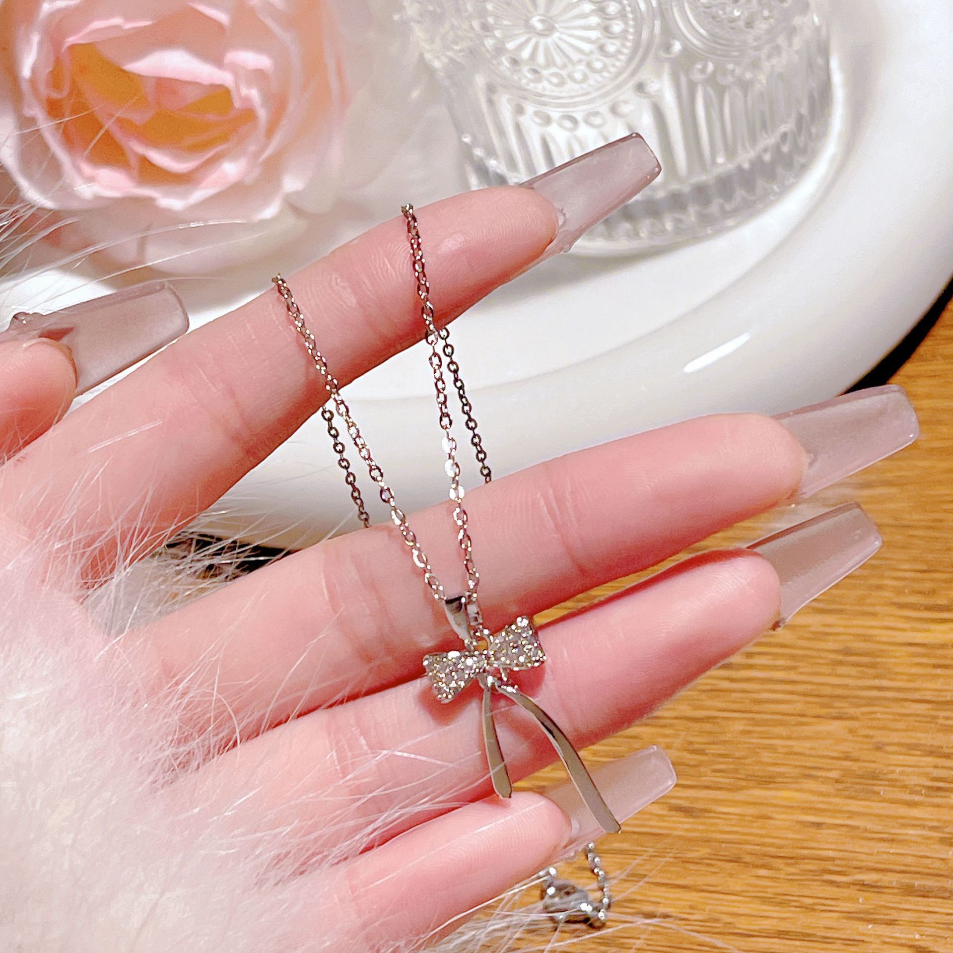 yxl9223 bow necklace steel color