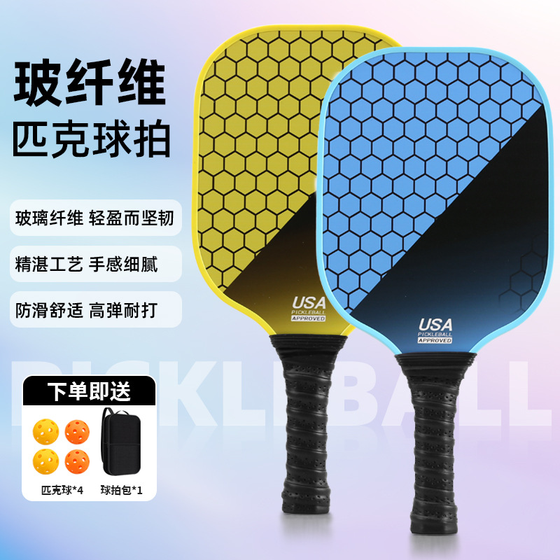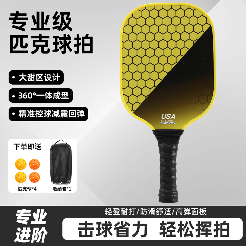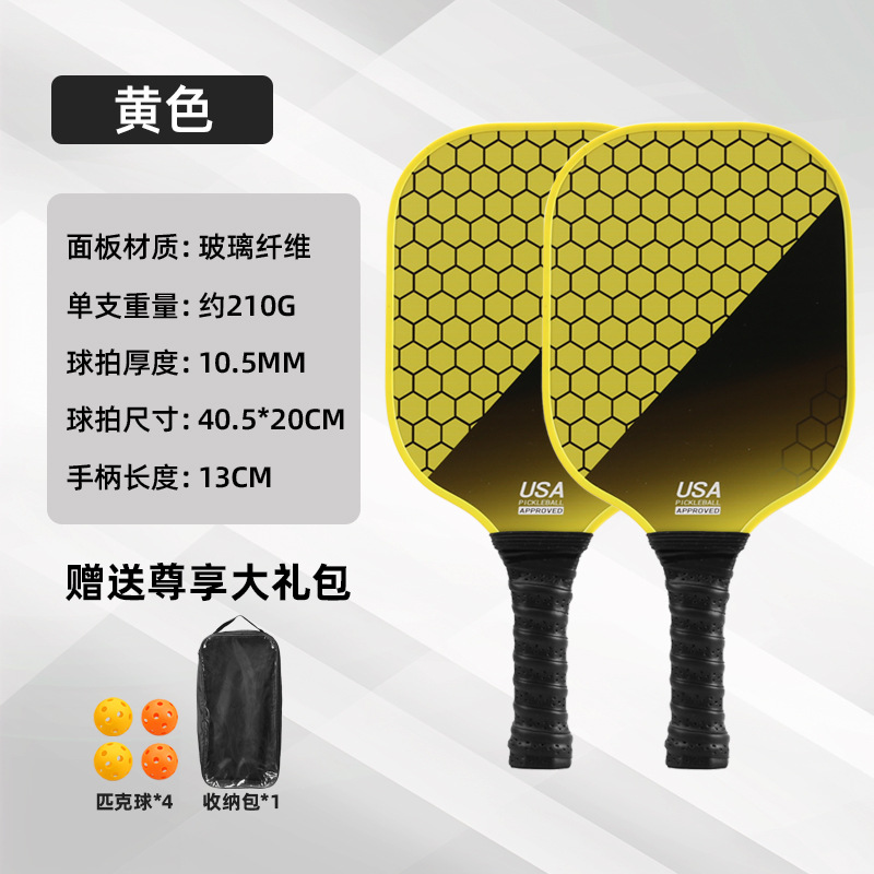 yellow double paddle +4 balls + transparent bag