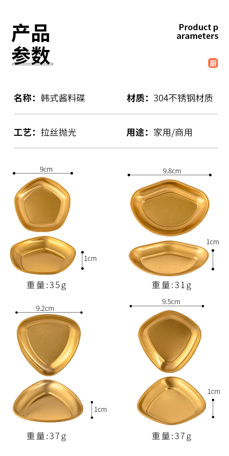 triangular sauce dish (gold)