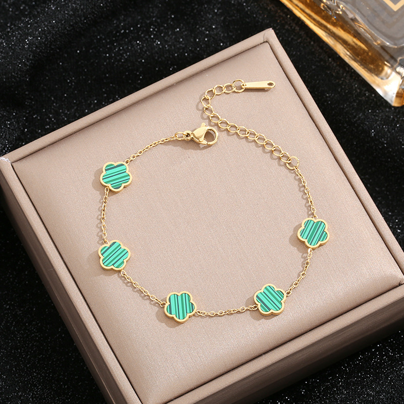 s695 green flower bracelet, gold color