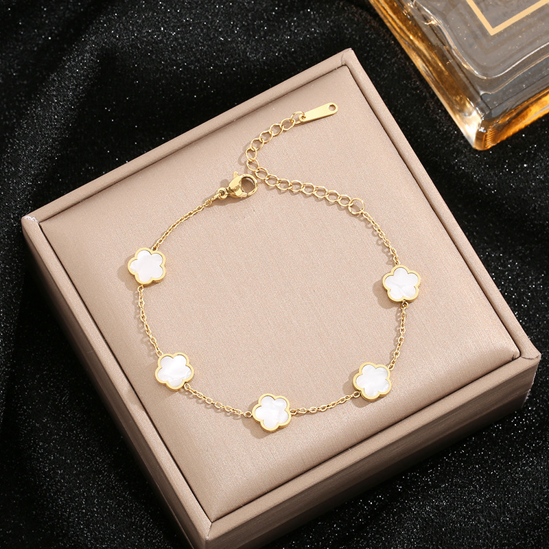 s695 white flower bracelet, gold color