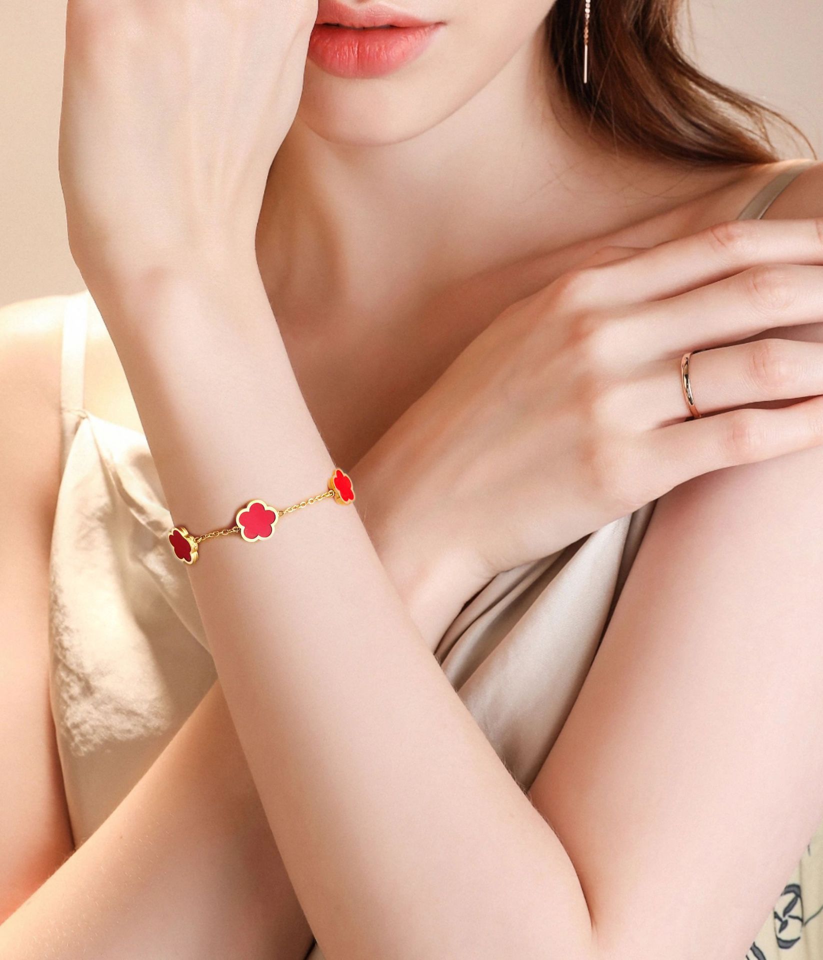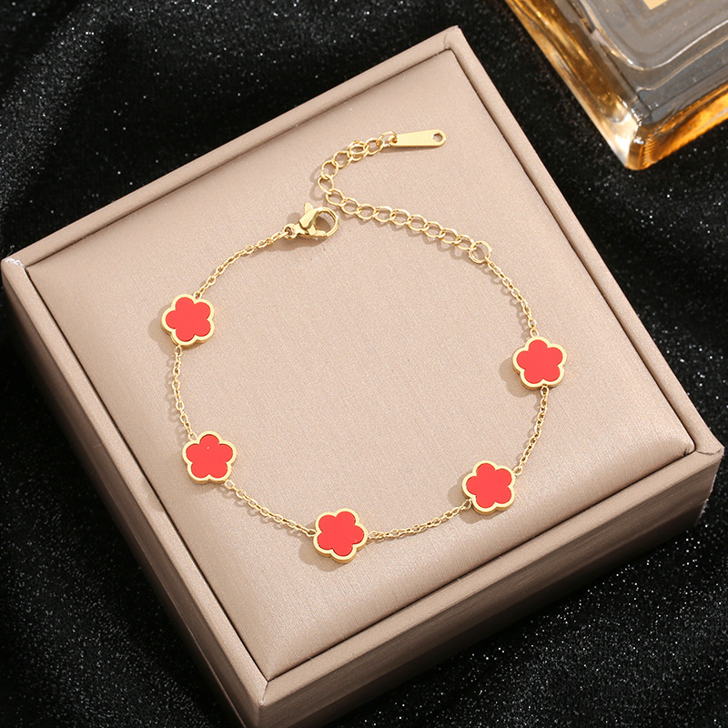 s695 red flower bracelet, gold color