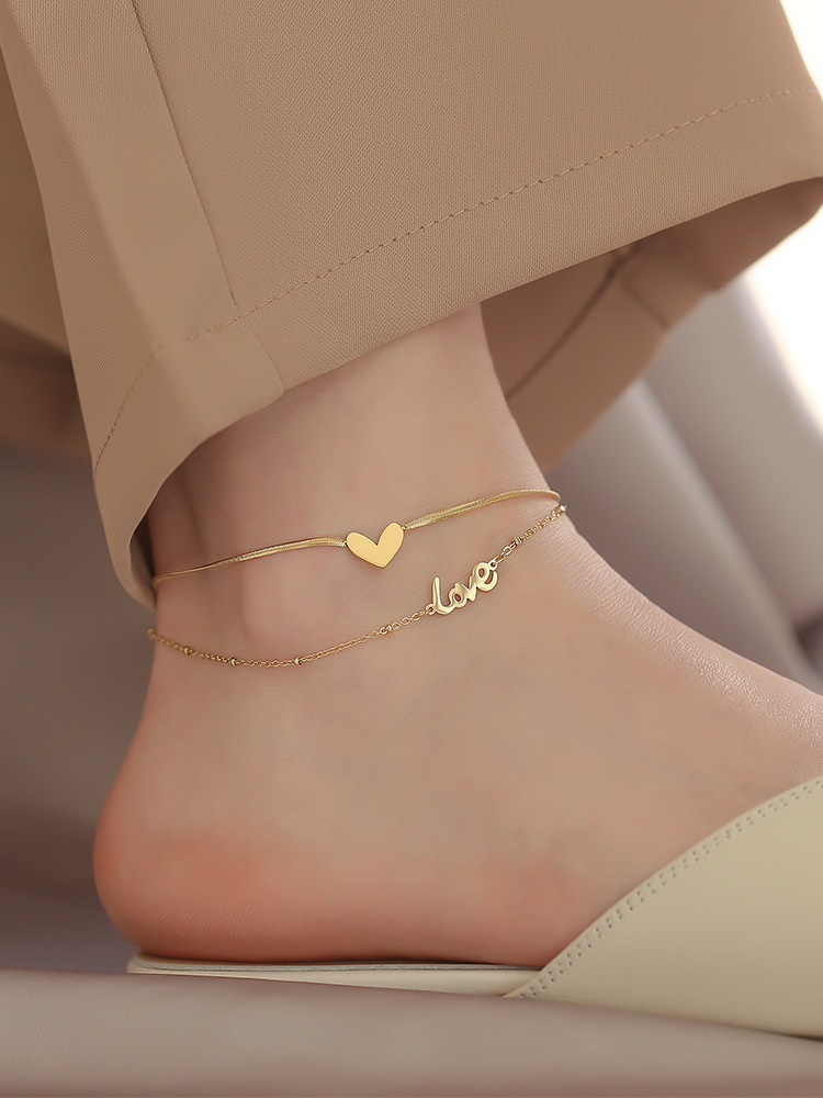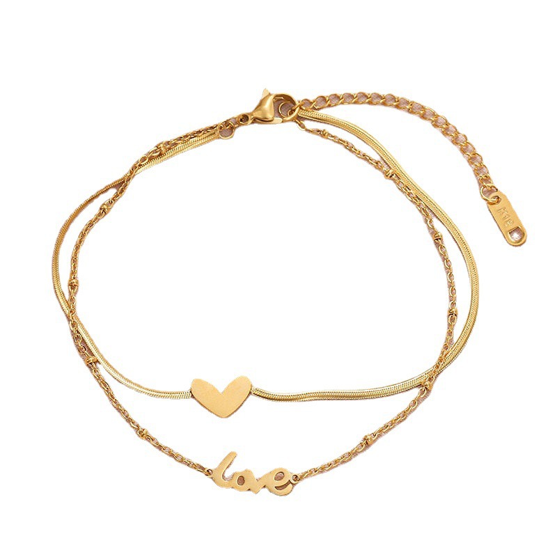 a【257】double-layer heart-shaped anklet, gold color