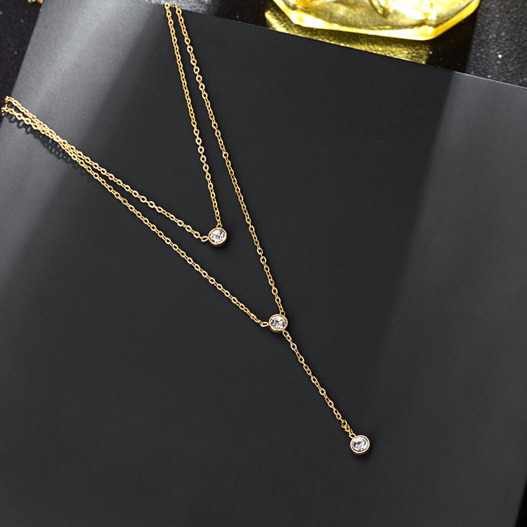 【86075】 three-diamond double-strand chain, gold color