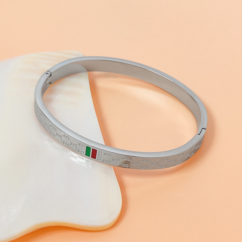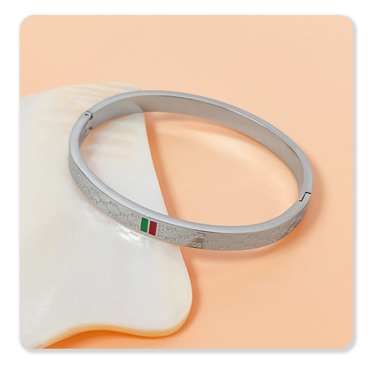 434 red and green patterned bracelet, steel color