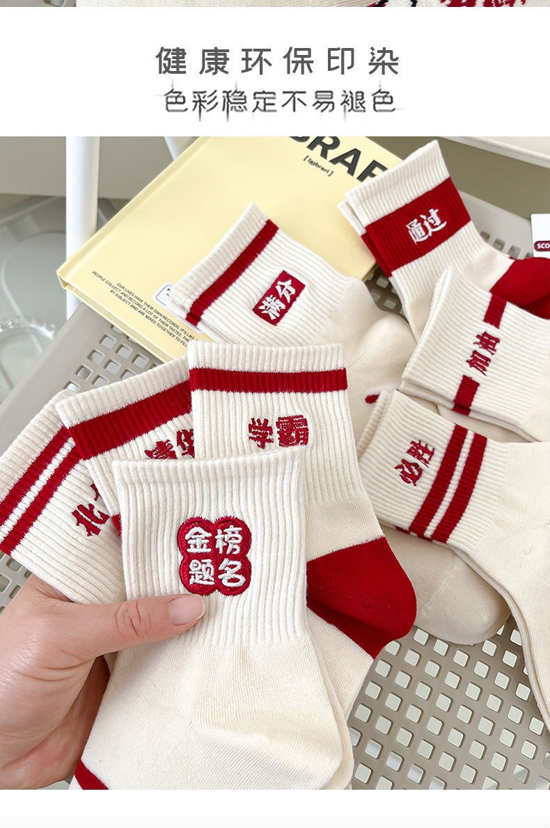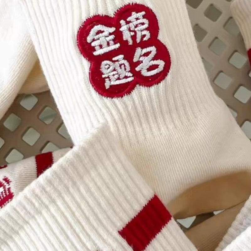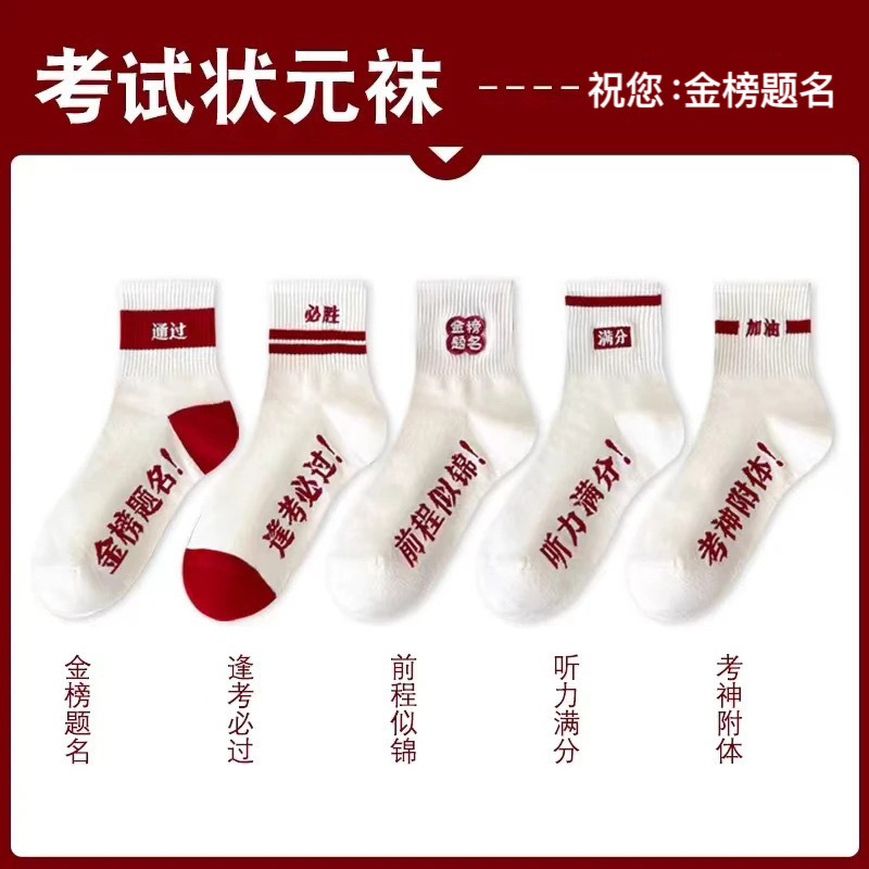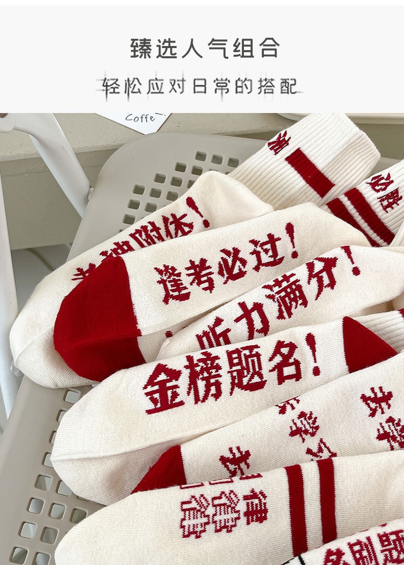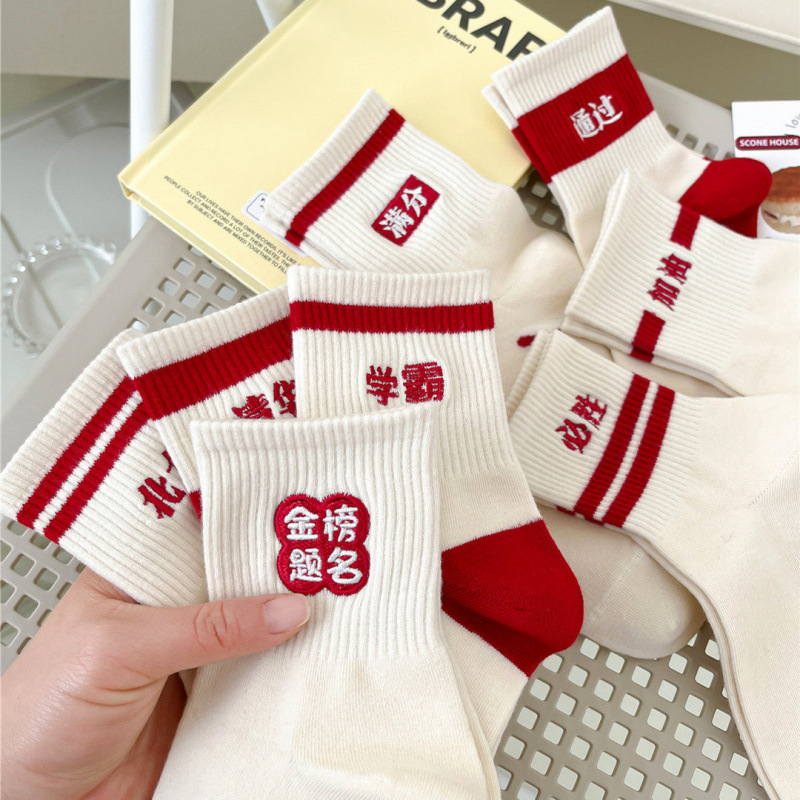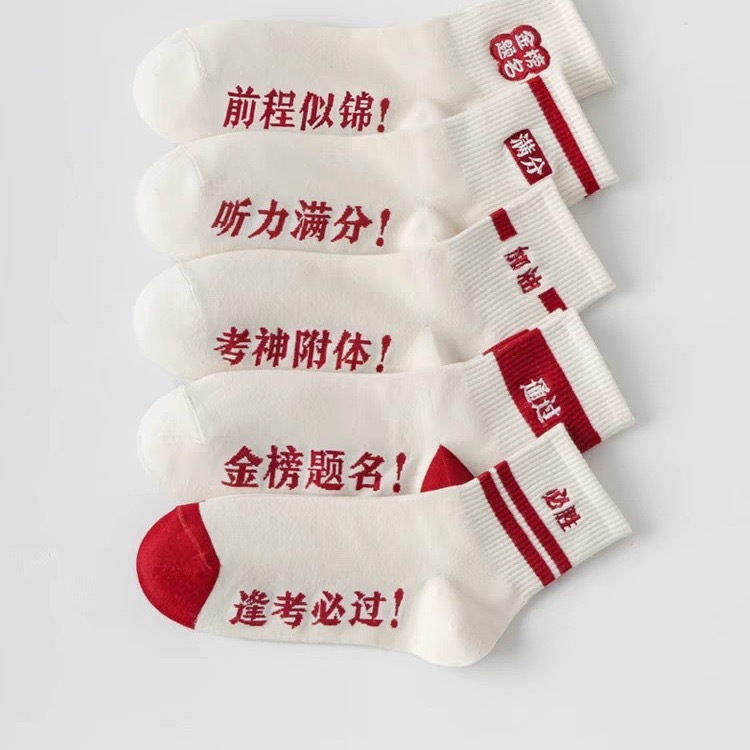 spring/autumn exam socks for girls—nominated for the “golden list”! college entrance exam socks, middle school exam socks for students; sweat-absorbing and trendy zhuji-made socks. wholesale stock for men.
