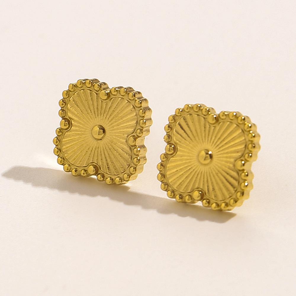 earrings, four-leaf clover, gold color