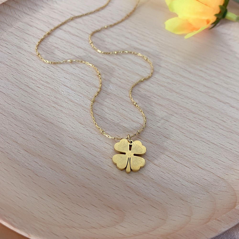 x290 spaced beads bamboo necklace four-leaf flower