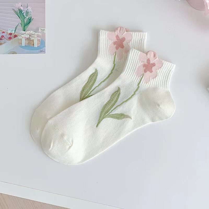 item no.: white floral socks