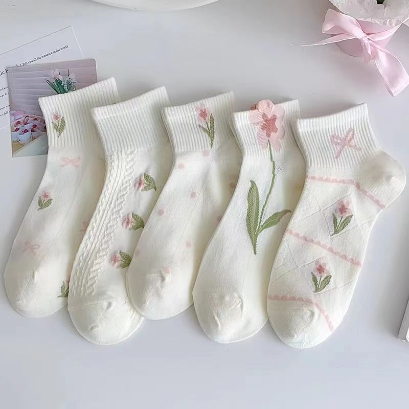 white floral socks