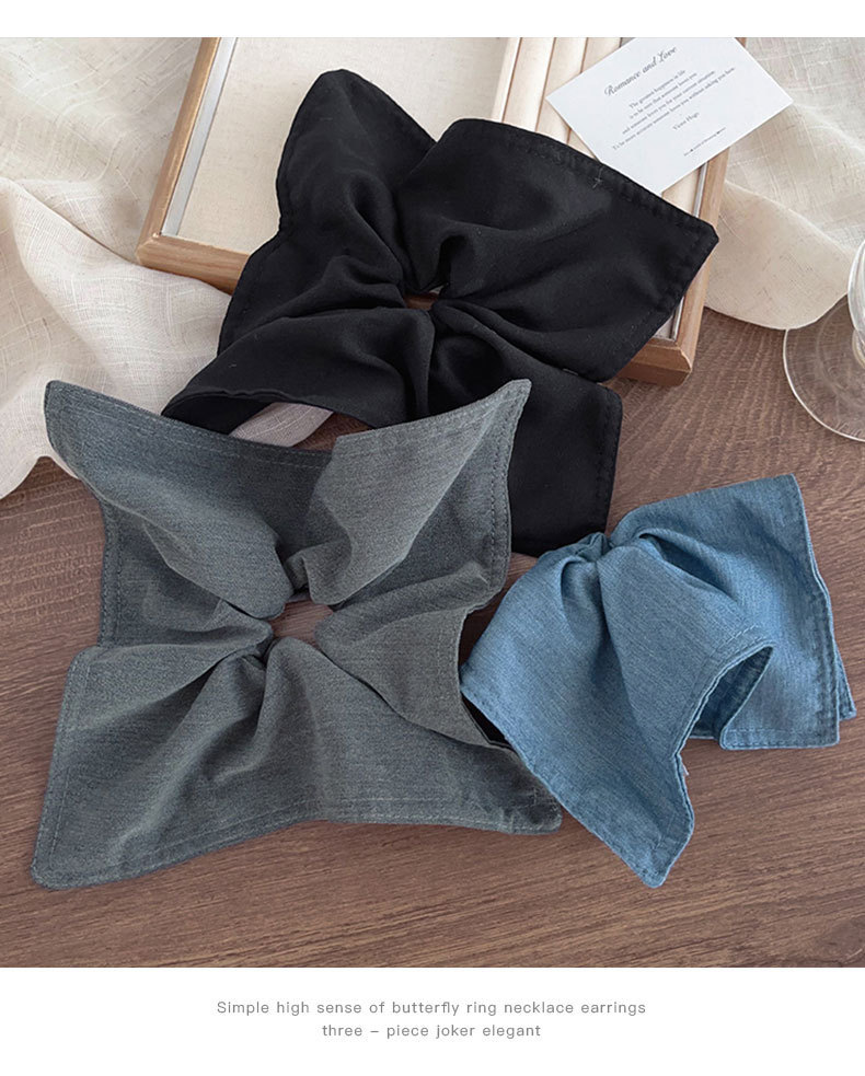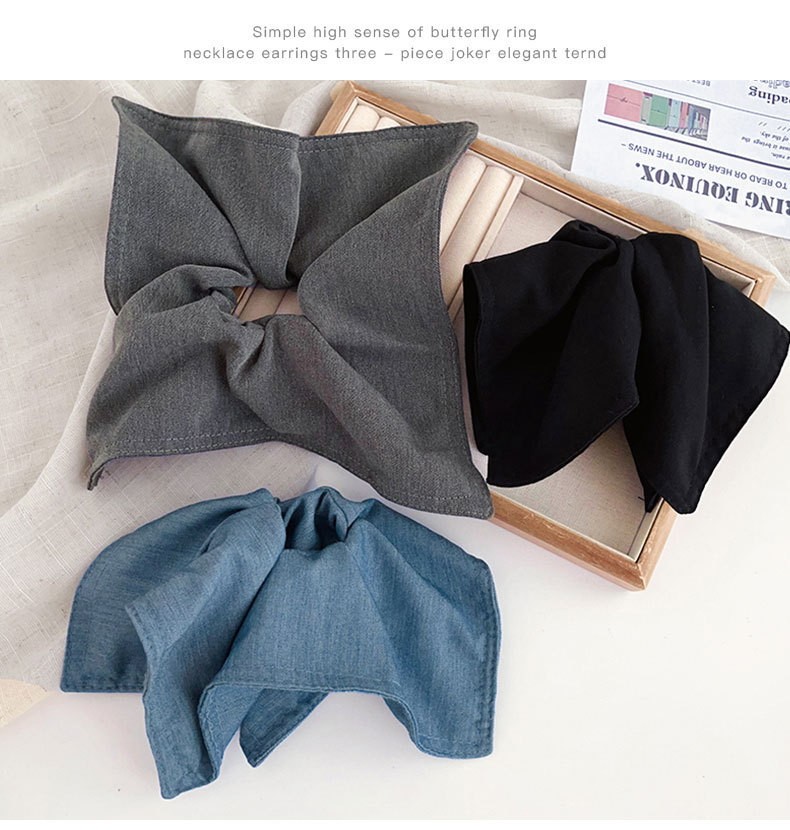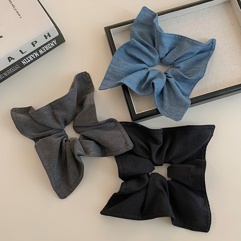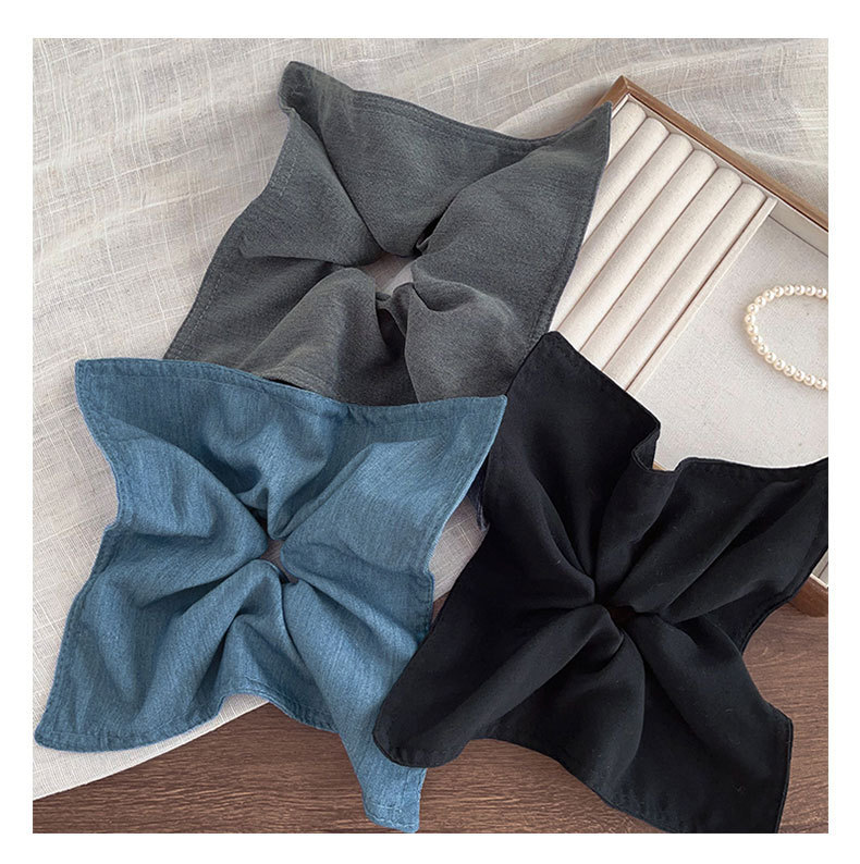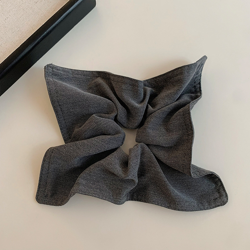 7# gray denim-square scarf hair tie