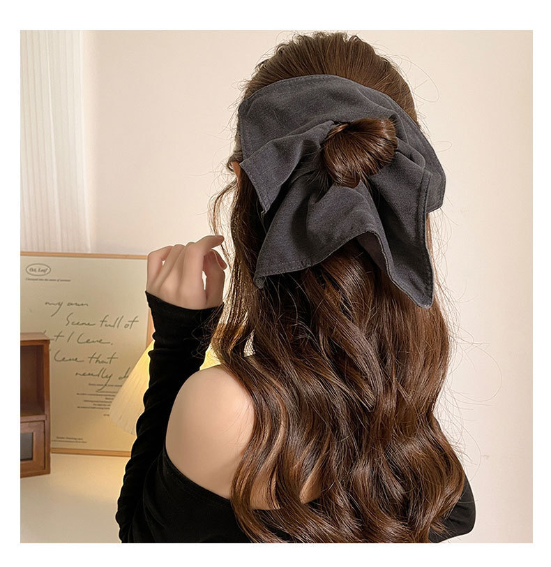 #6 black denim-square scarf hair tie