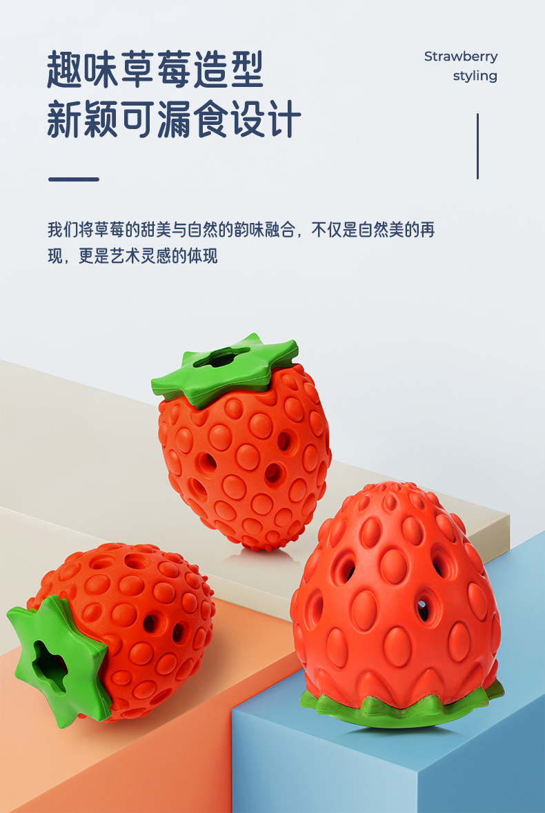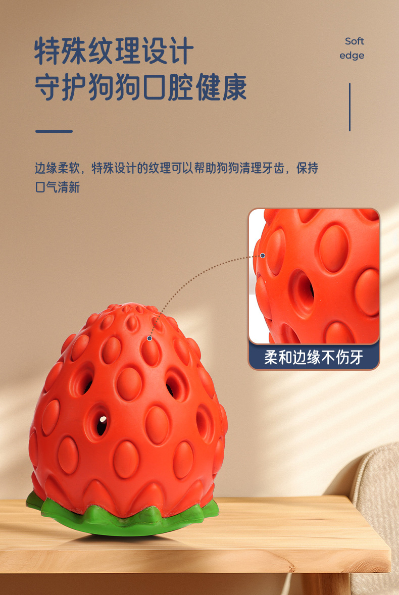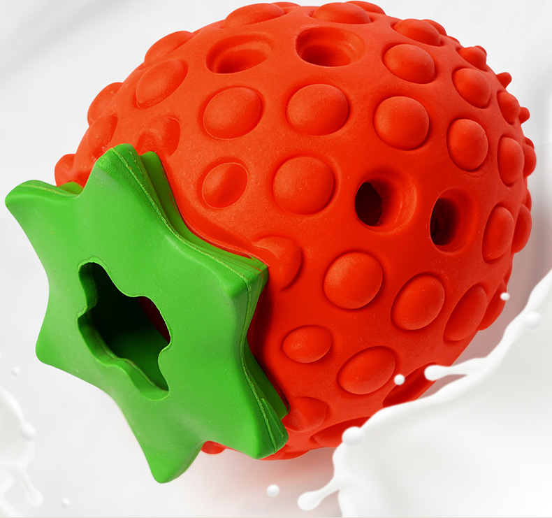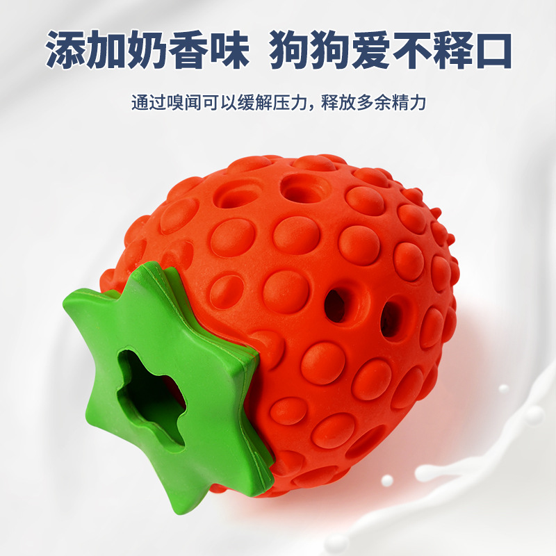 Cross-border leakage food hidden food strawberry toy interactive teeth grinding cleaning dog toy natural rubber environmental protection pet toy