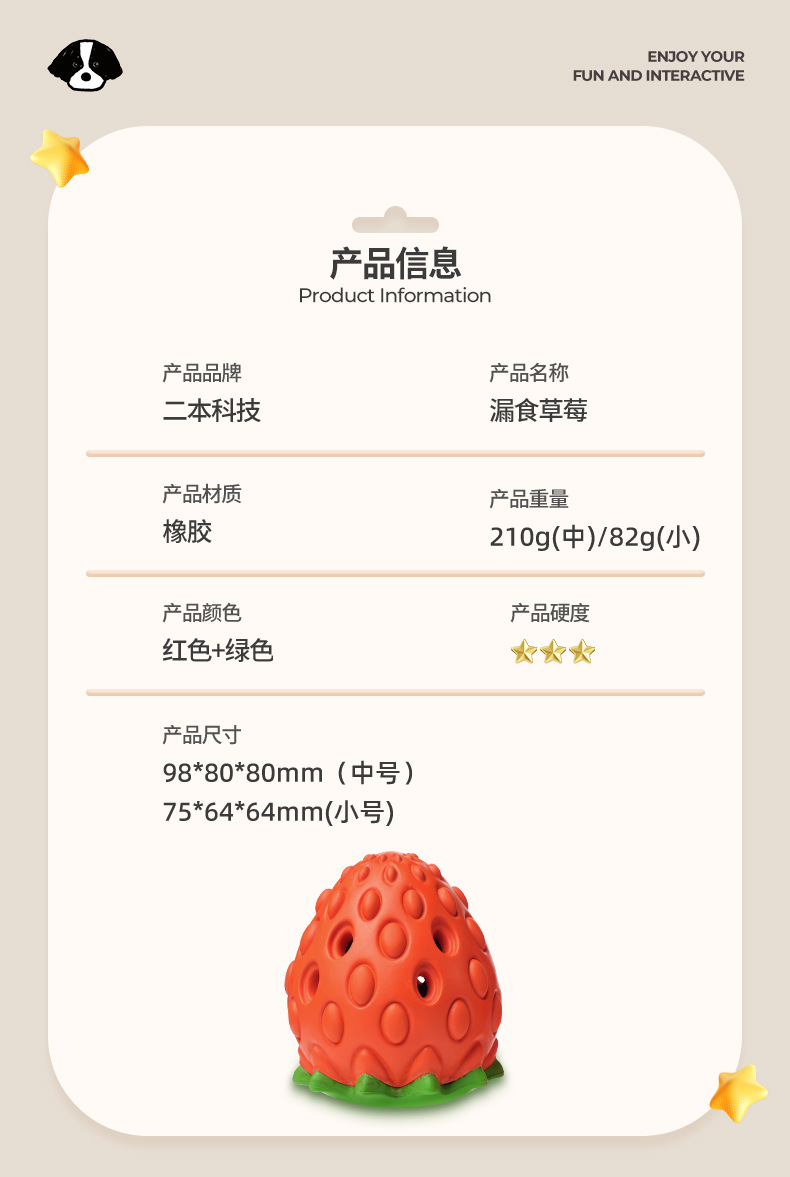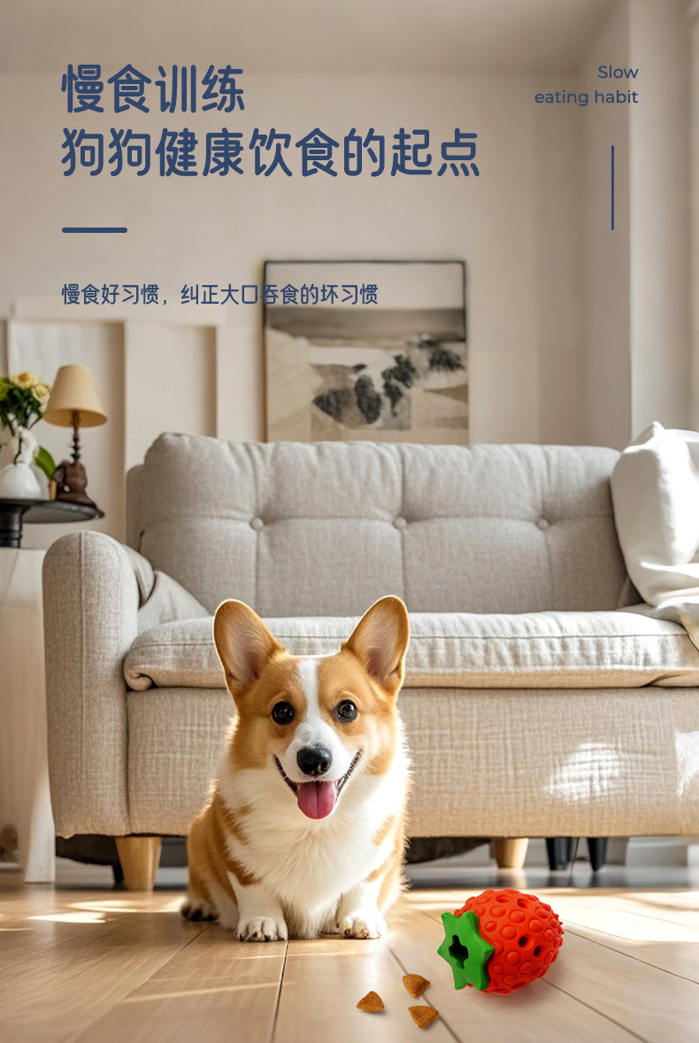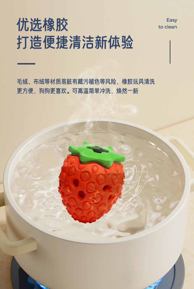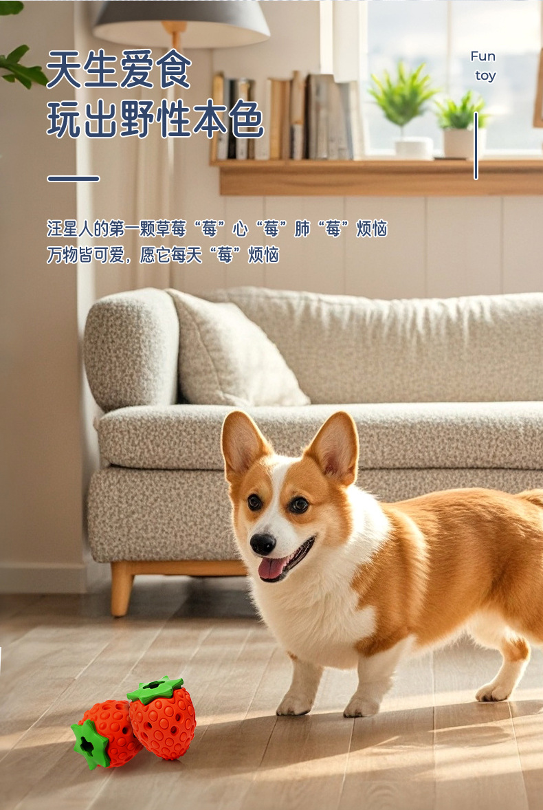 Cross-border leakage food hidden food strawberry toy interactive teeth grinding cleaning dog toy natural rubber environmental protection pet toy