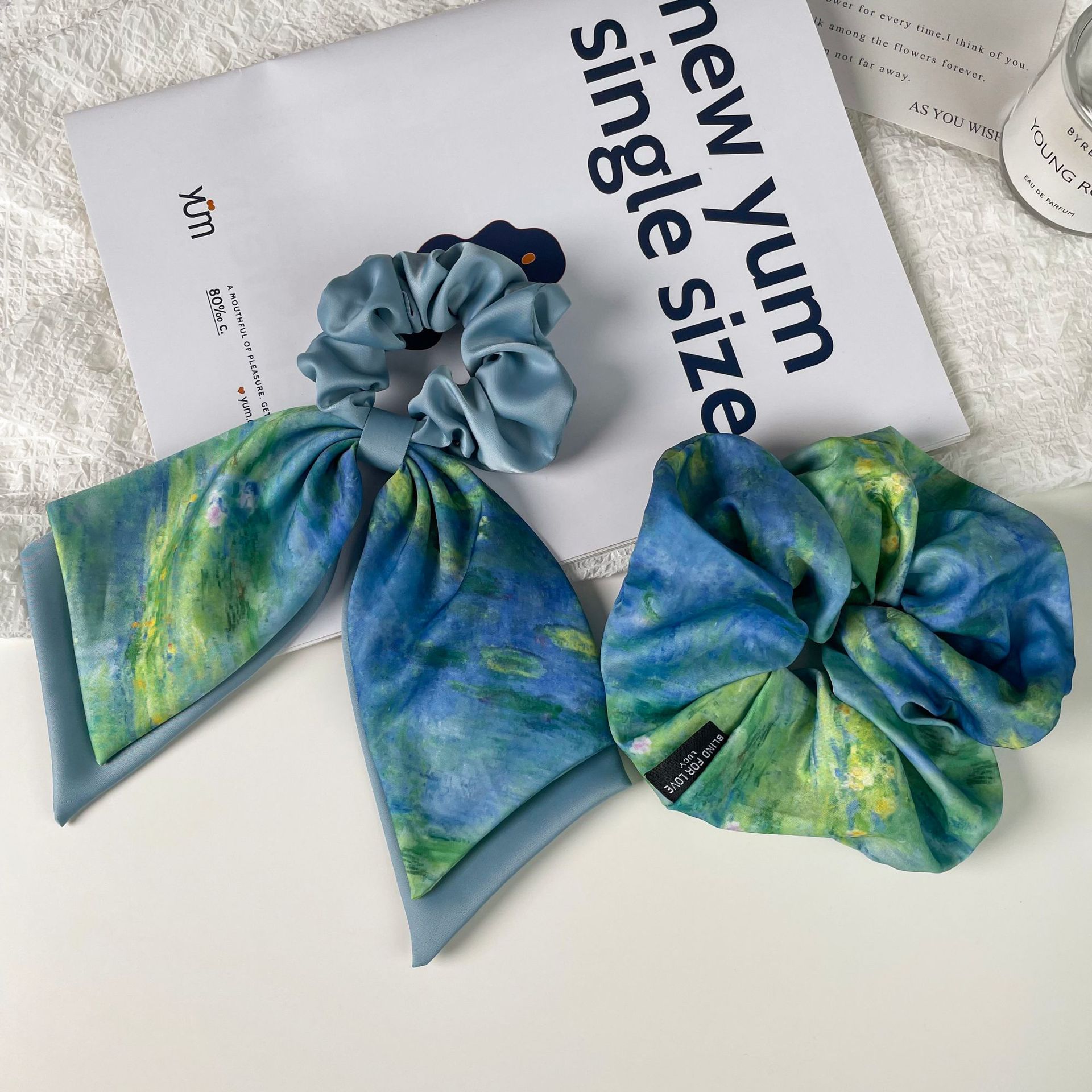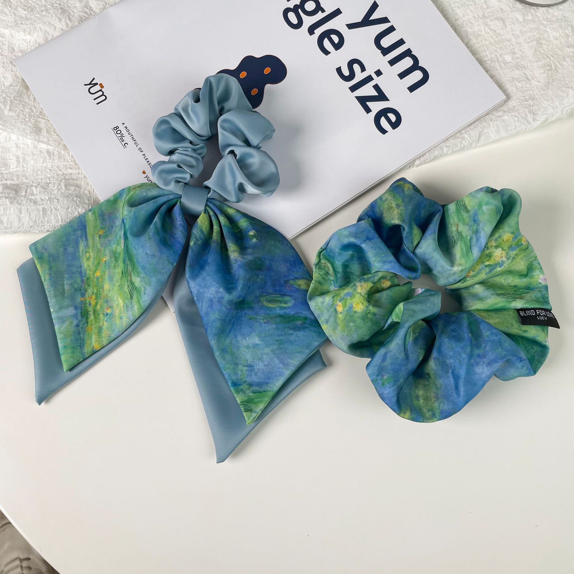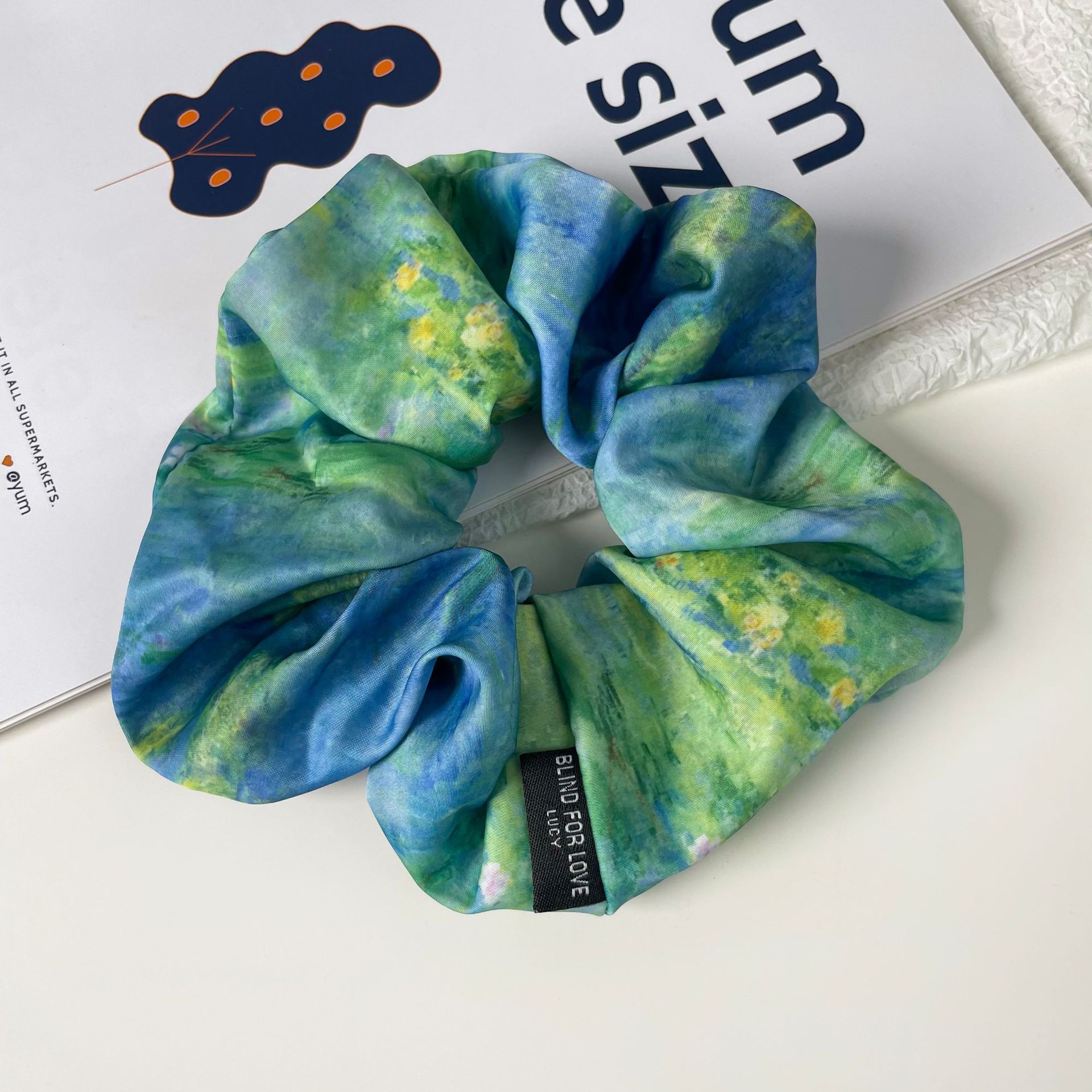 blue oil painting-hair tie style