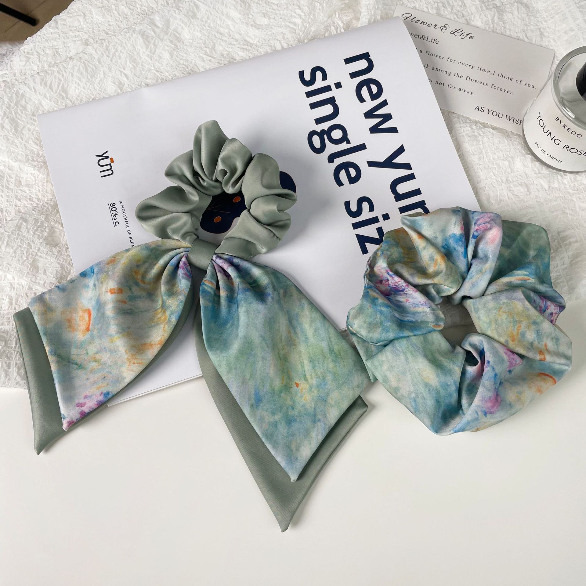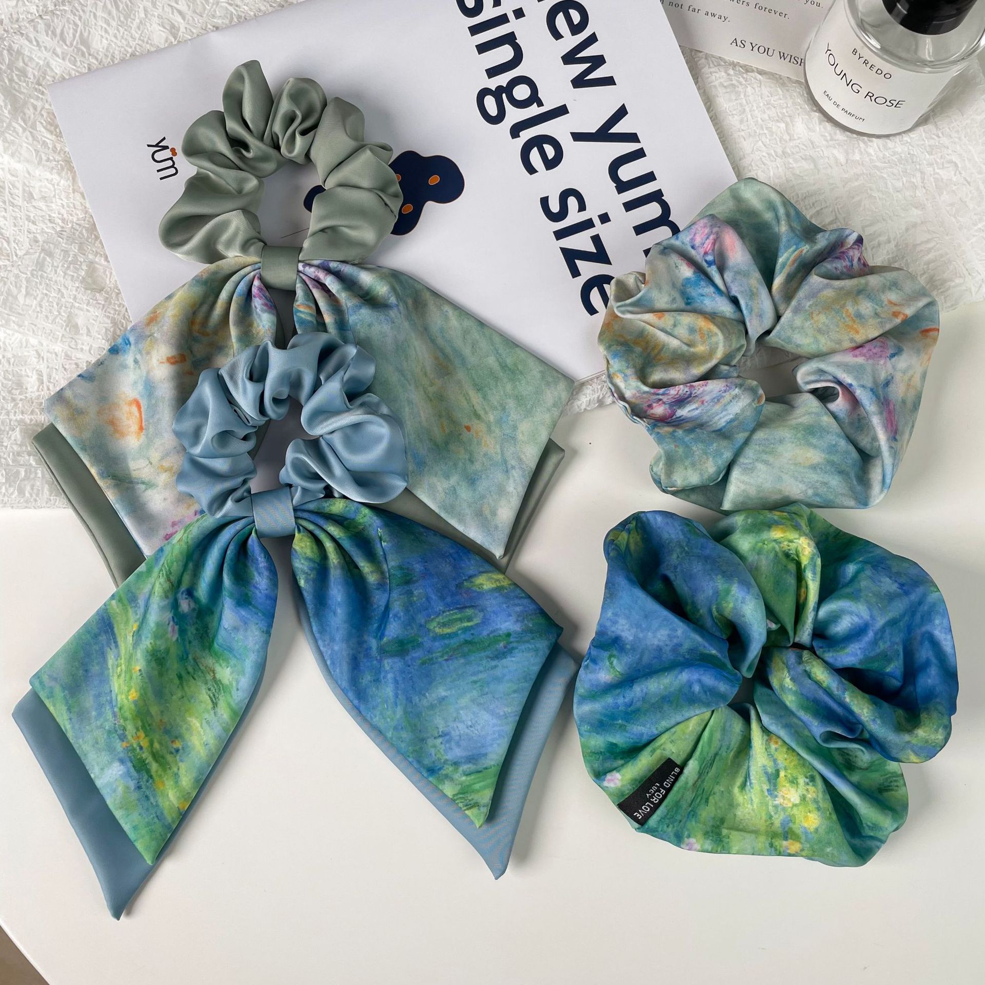 green oil painting-hair tie style