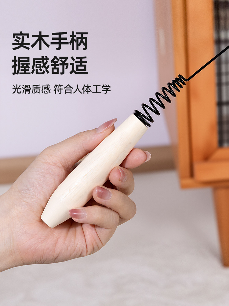 wooden handle cat teaser + white feather replacement head total two heads