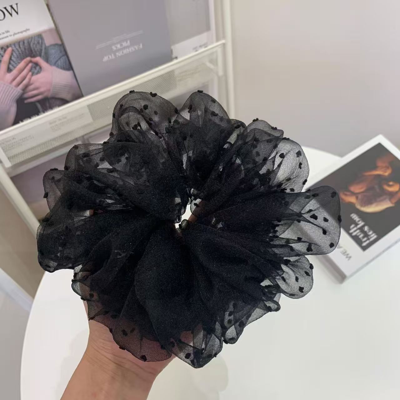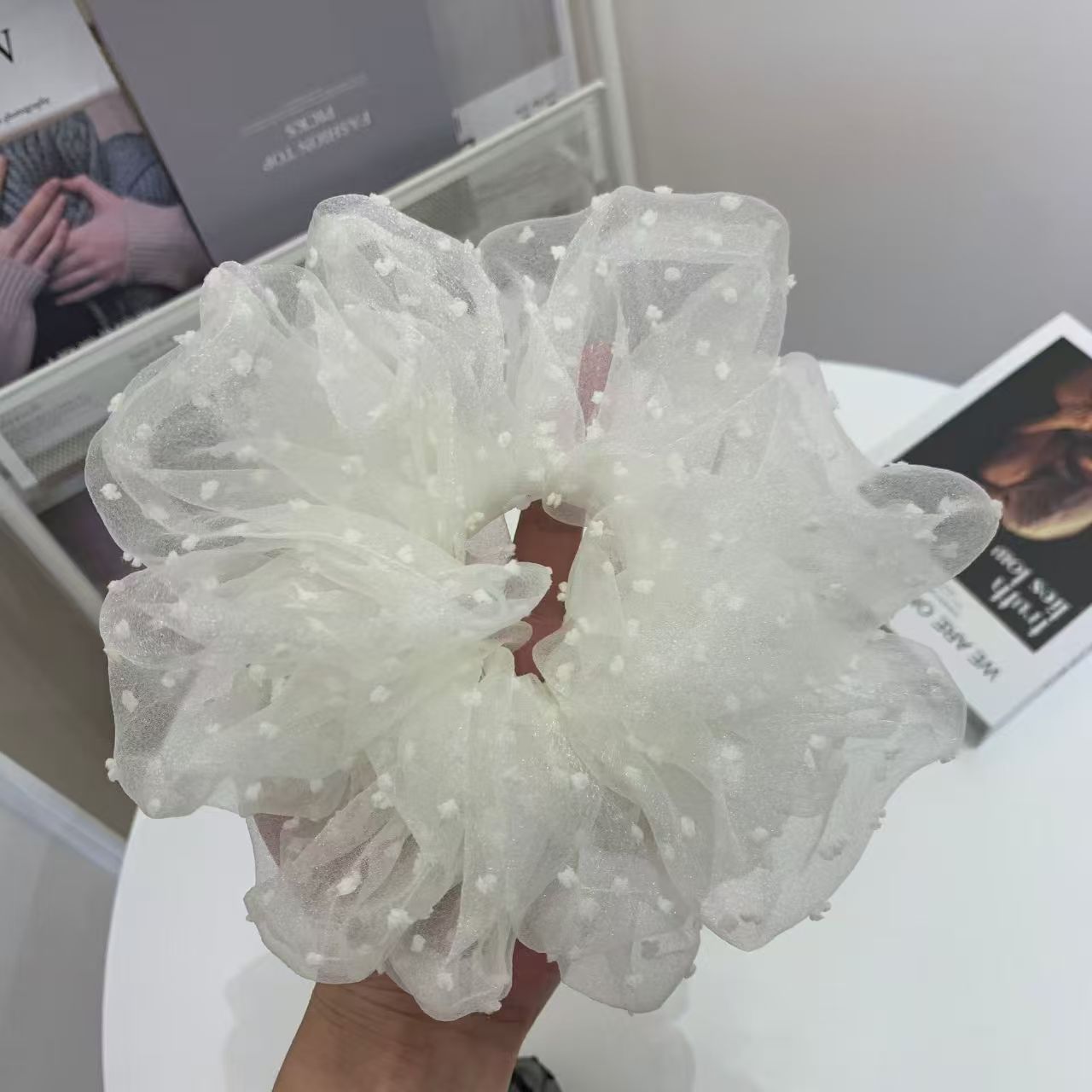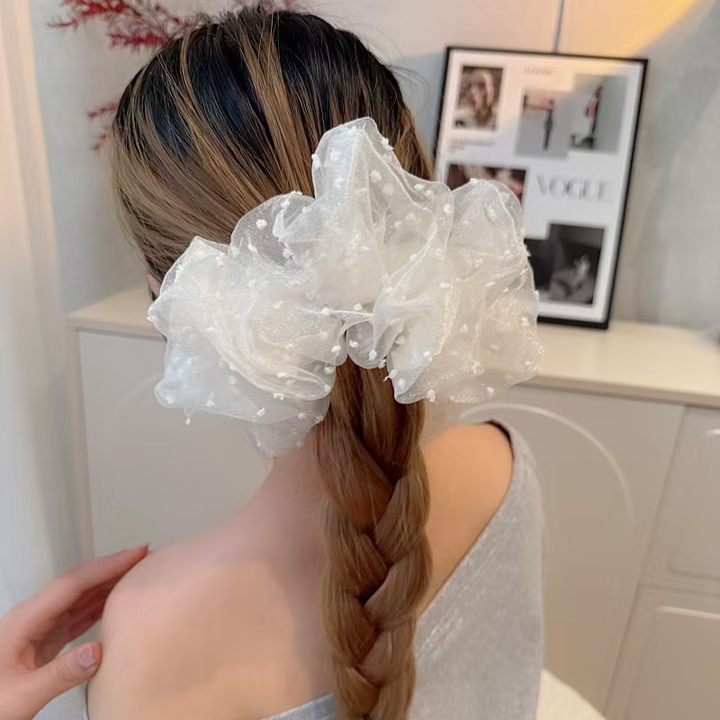 white dotted hair tie