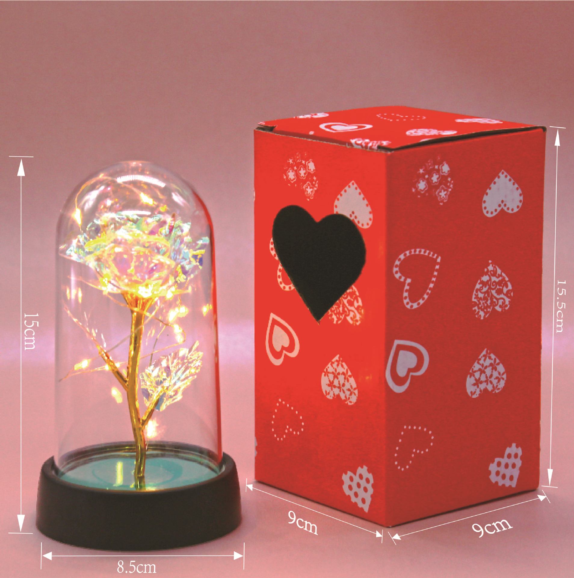 gold foil [rose red] + plastic cover + warm light + color box