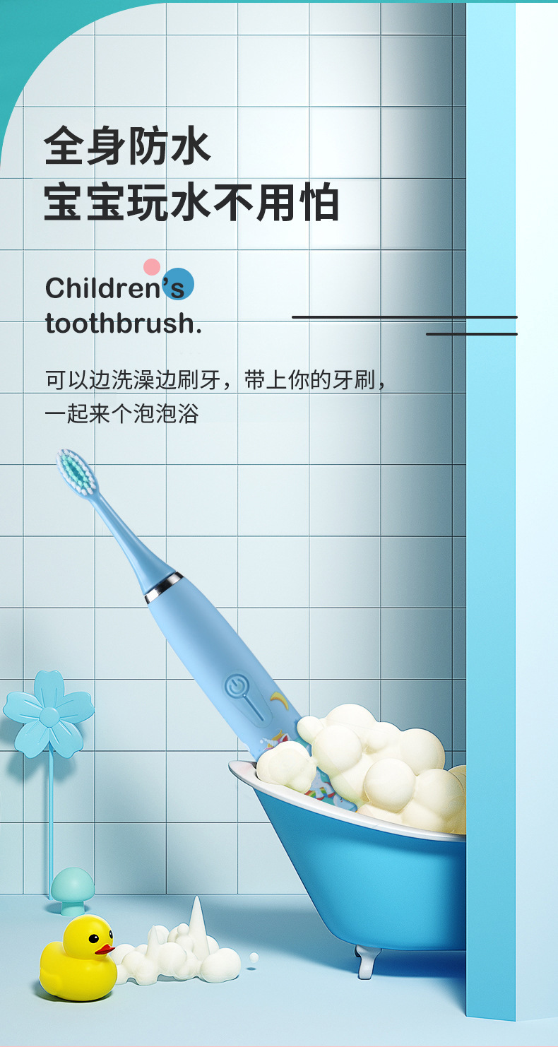 cartoon toothbrush english light blue rechargeable [8 bruch head]]