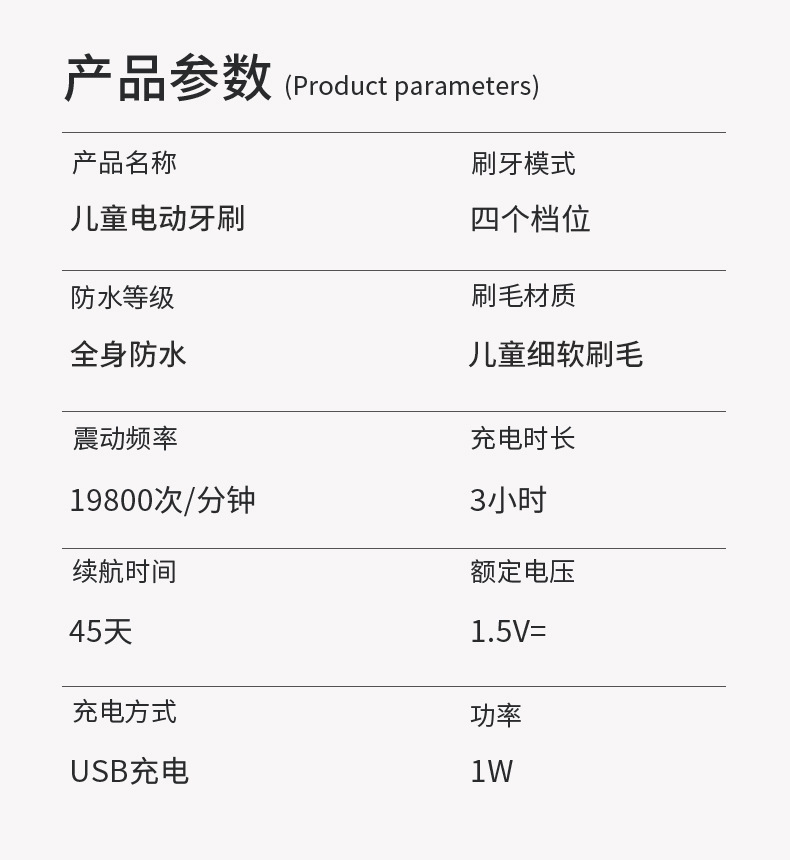 Waterproof rating: IPX6-level waterproof Vibration frequency: 19800 times/minute