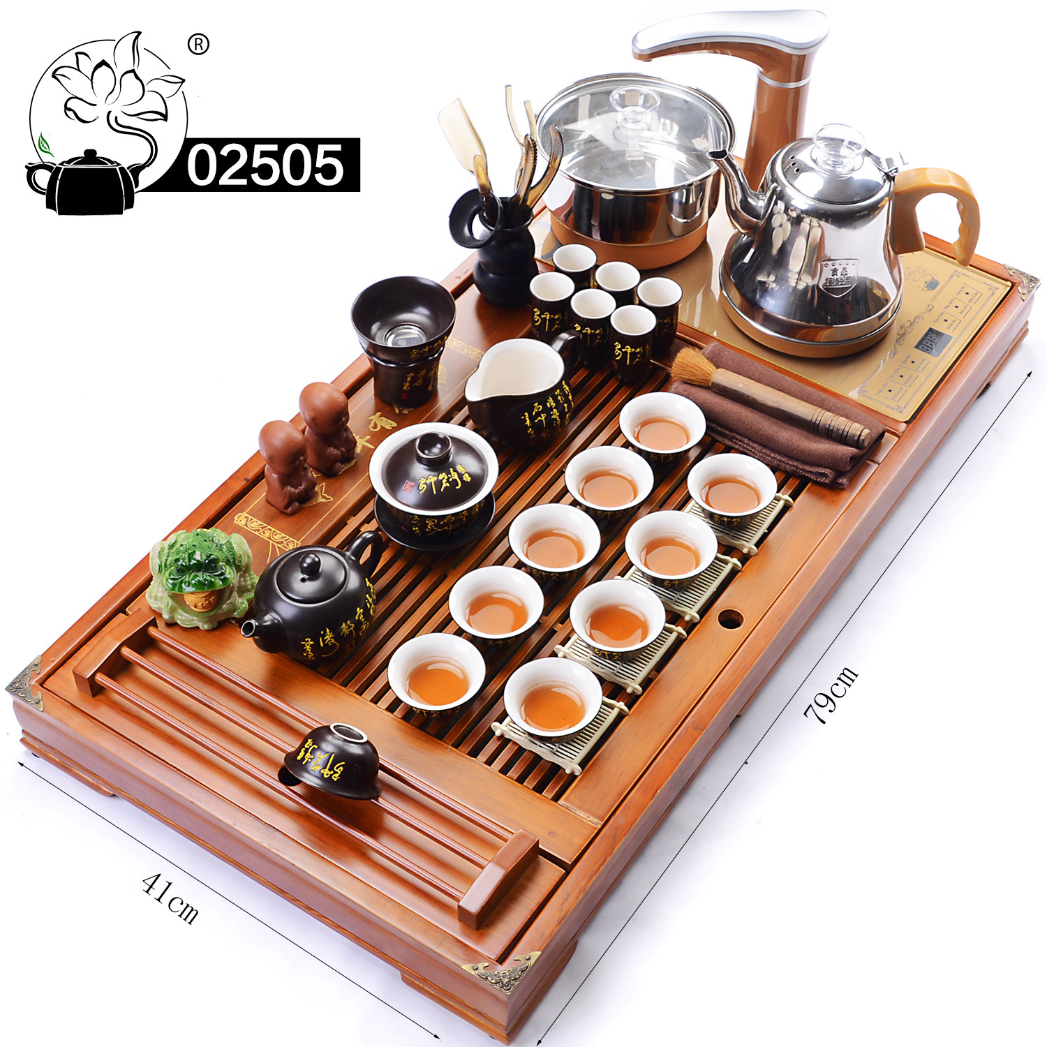 red annual plate + black purple sand tea set