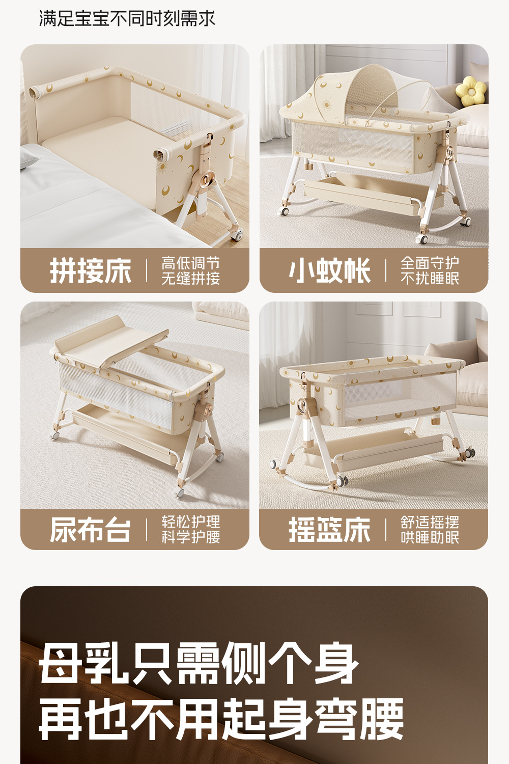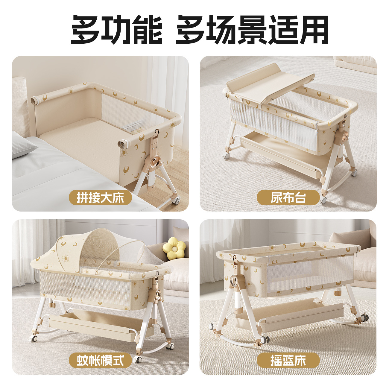 [installation-free] xingyue mi [luxury model] free memory pad + storage basket + mosquito net + diaper-changing table + seconds to cradle
