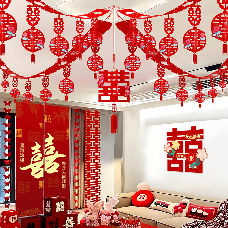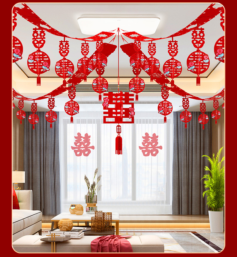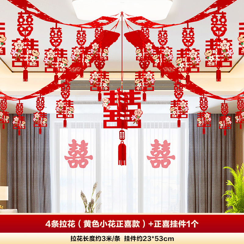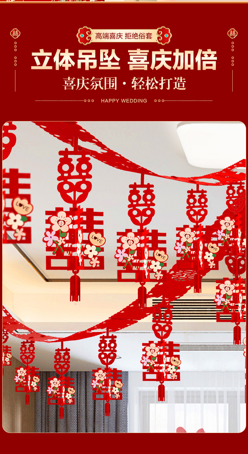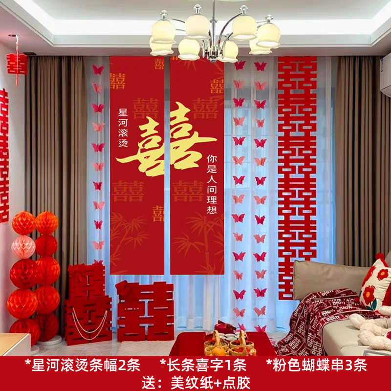 xinghe hot double happiness hanging cloth + long xi + pink butterfly string 3