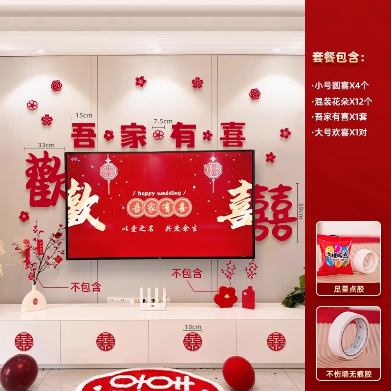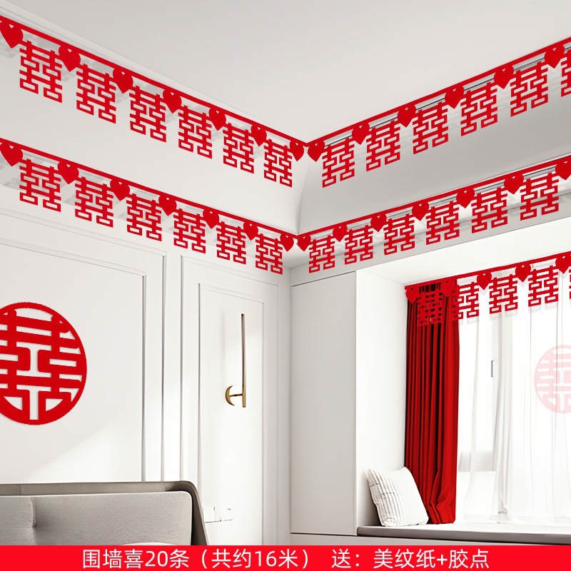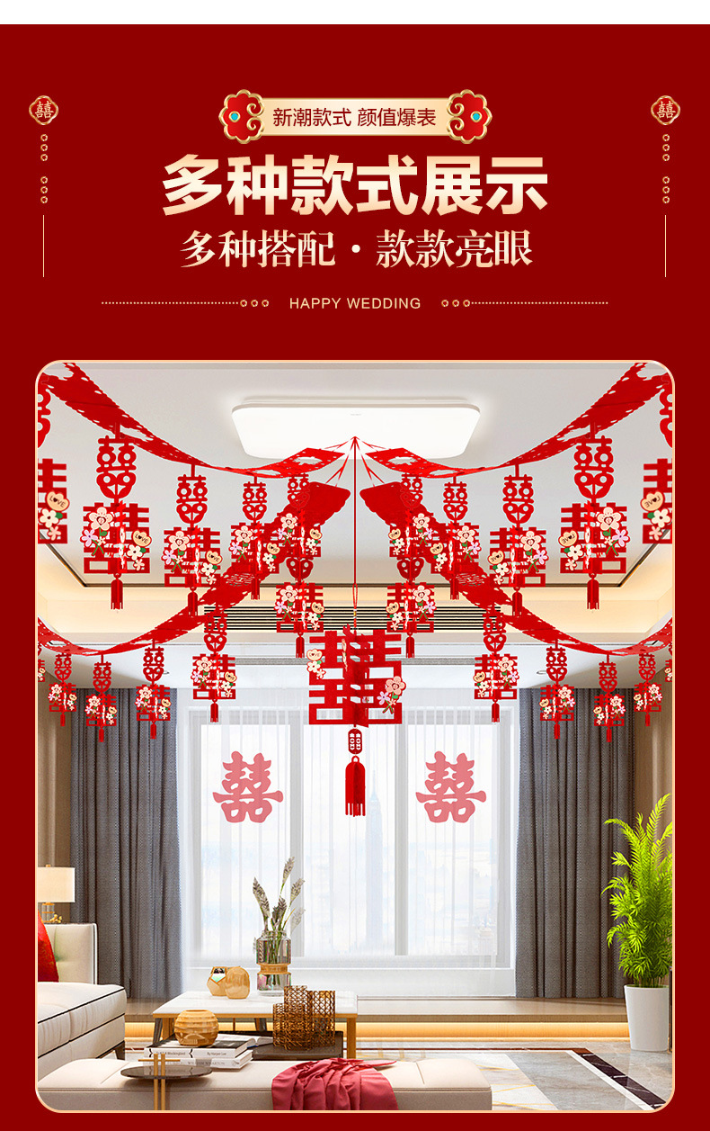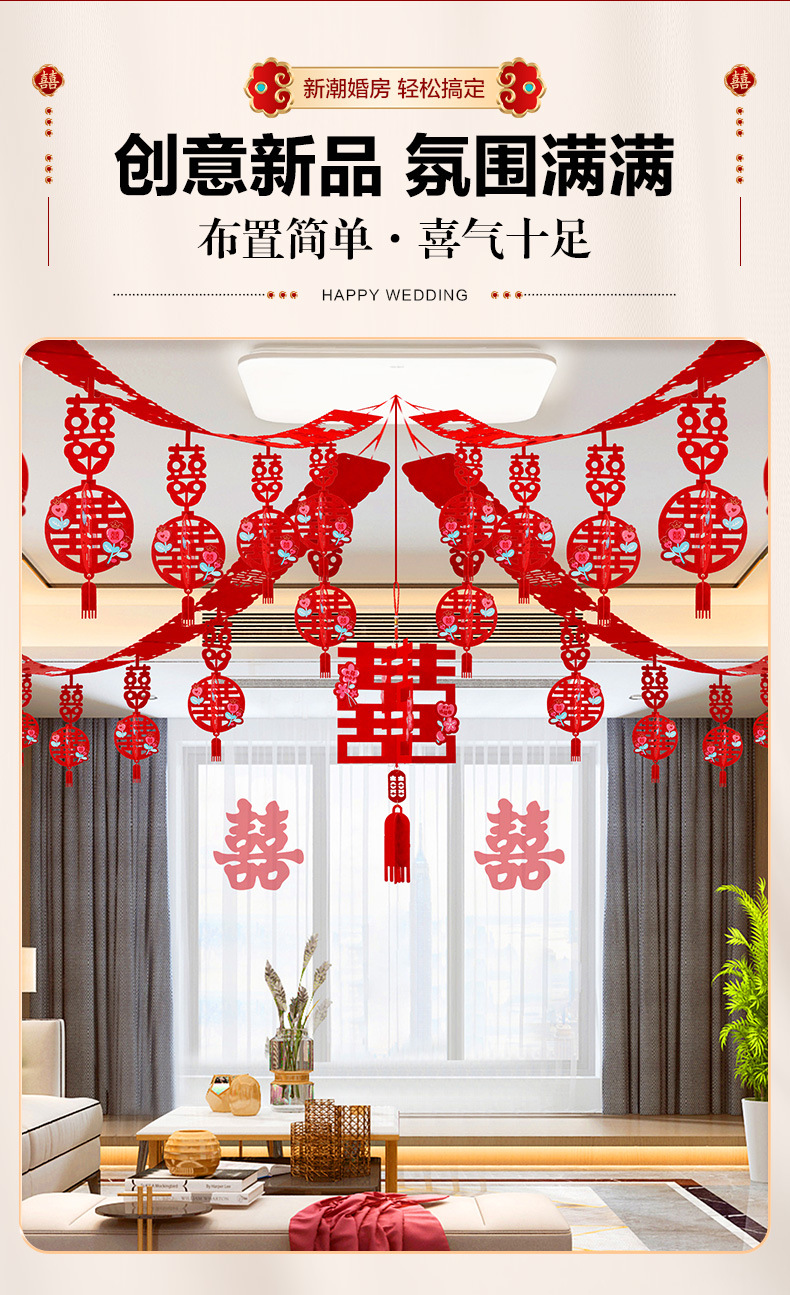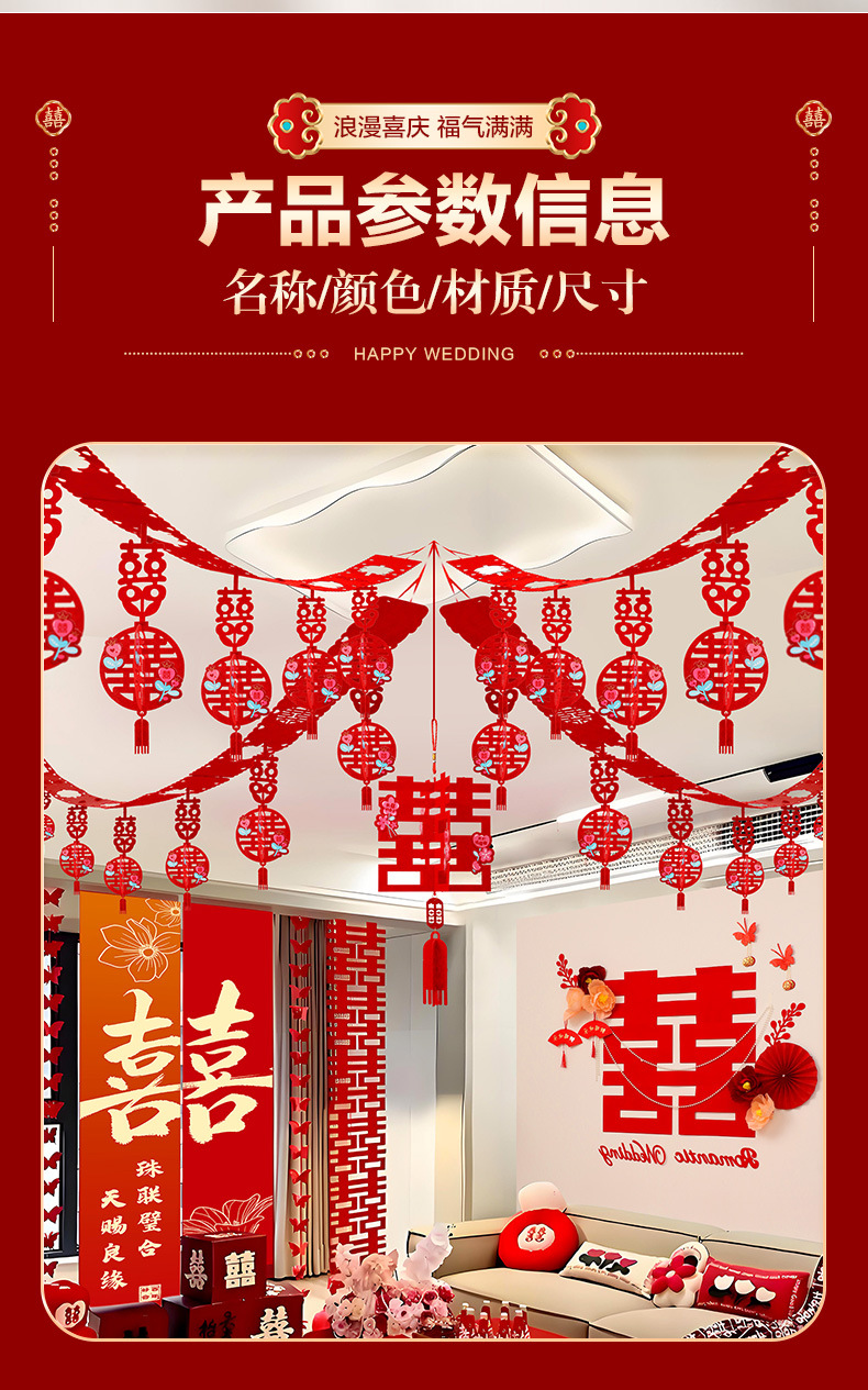 xinghe hot double happiness hanging cloth + long xi + pink butterfly string 3