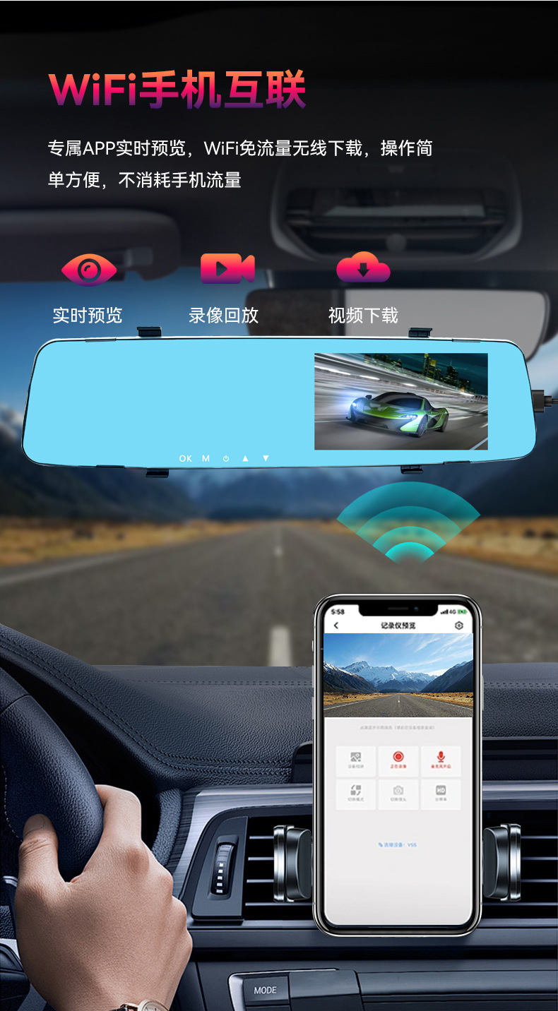 h55 double recording wifi4.5 + memory card 64g