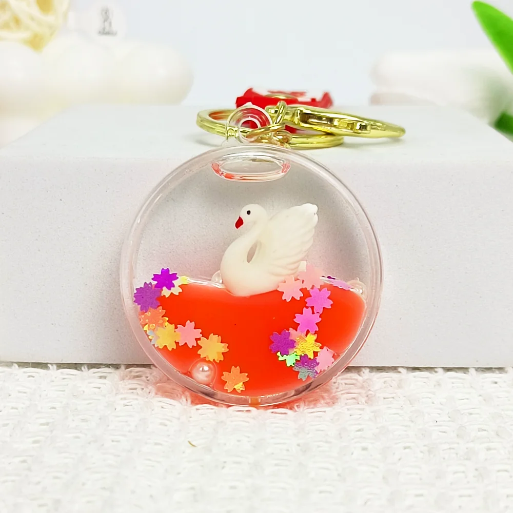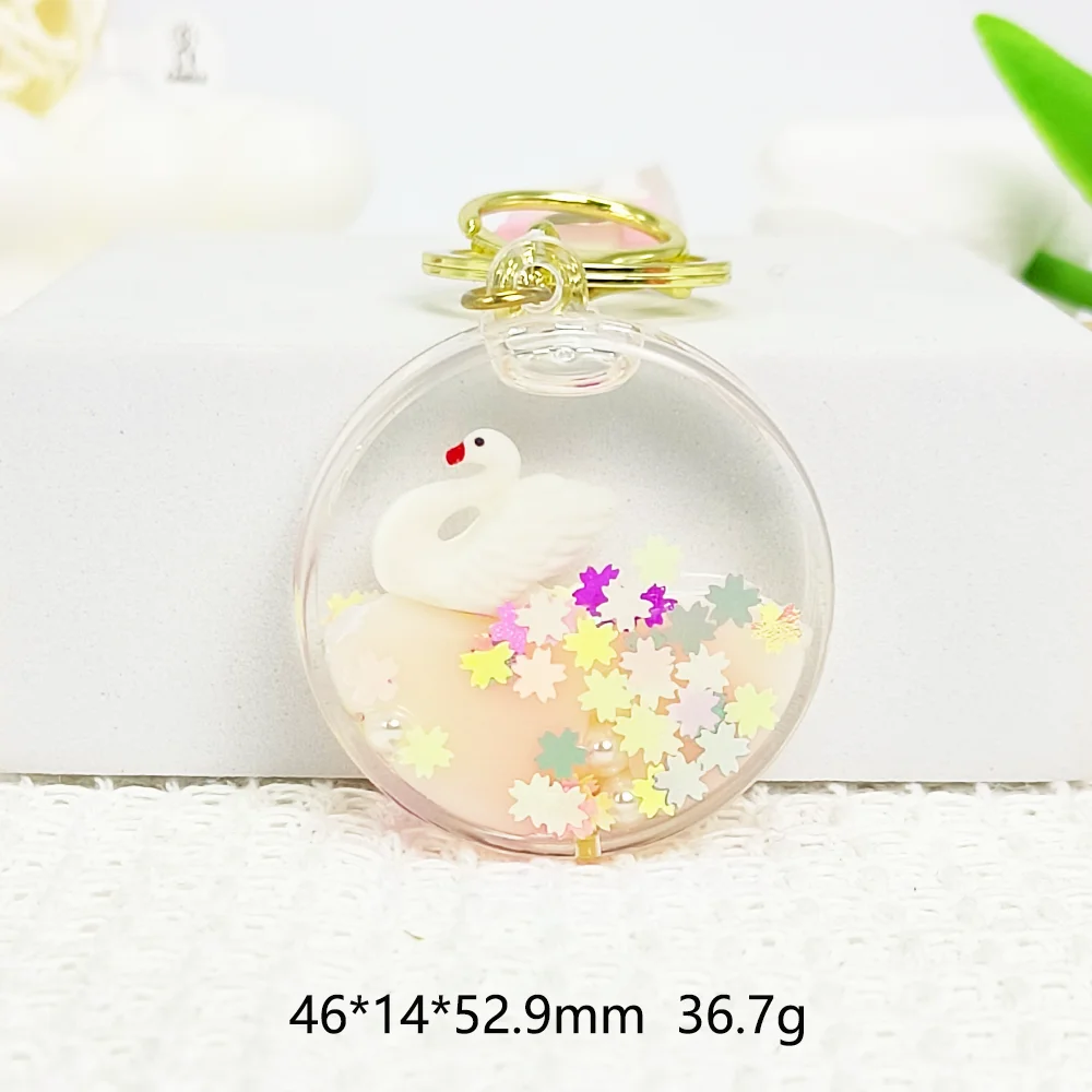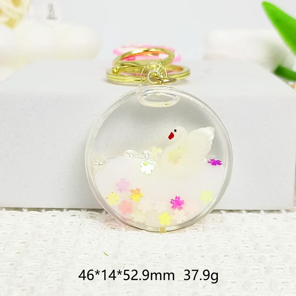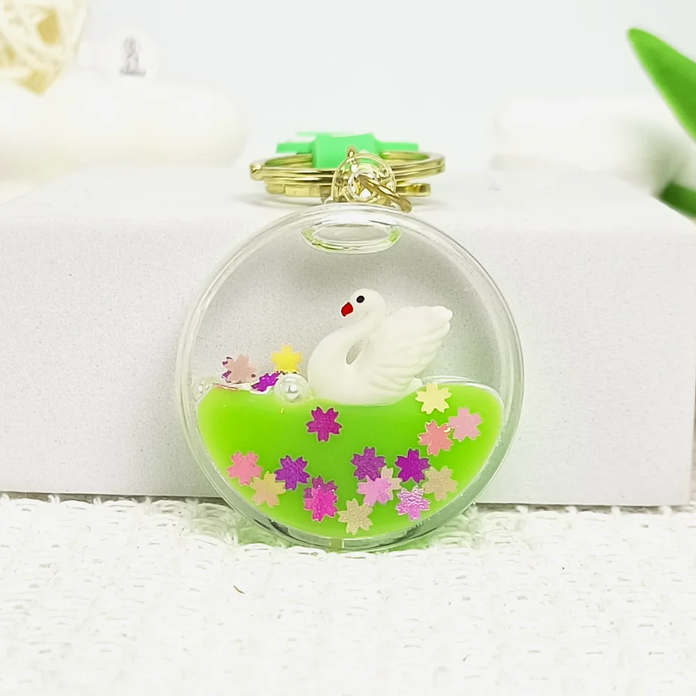 Magic Floating Swan Effect: A statue of a swan floats in a colorful liquid, and the sakura sequins create a dream-like visual effect when they shake.