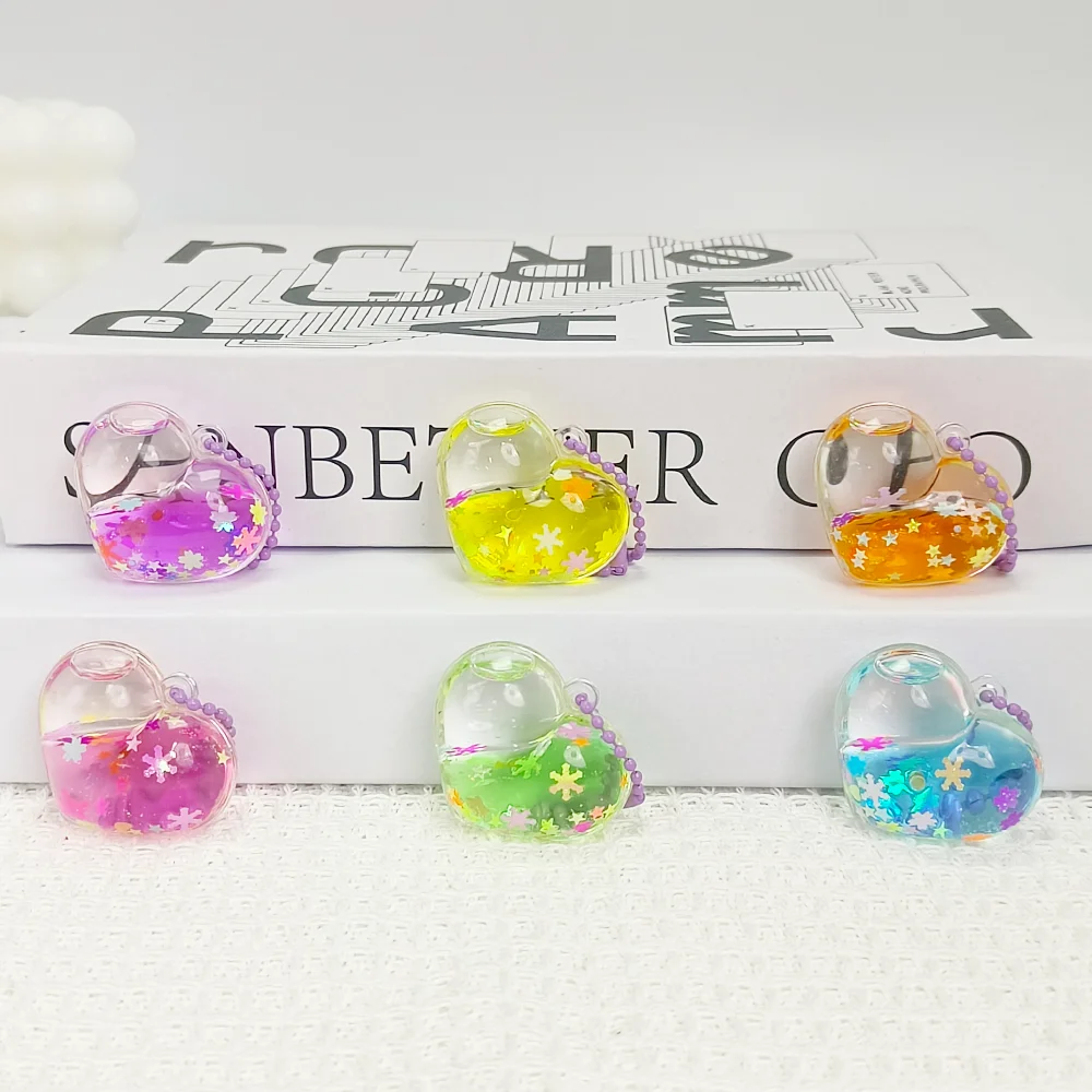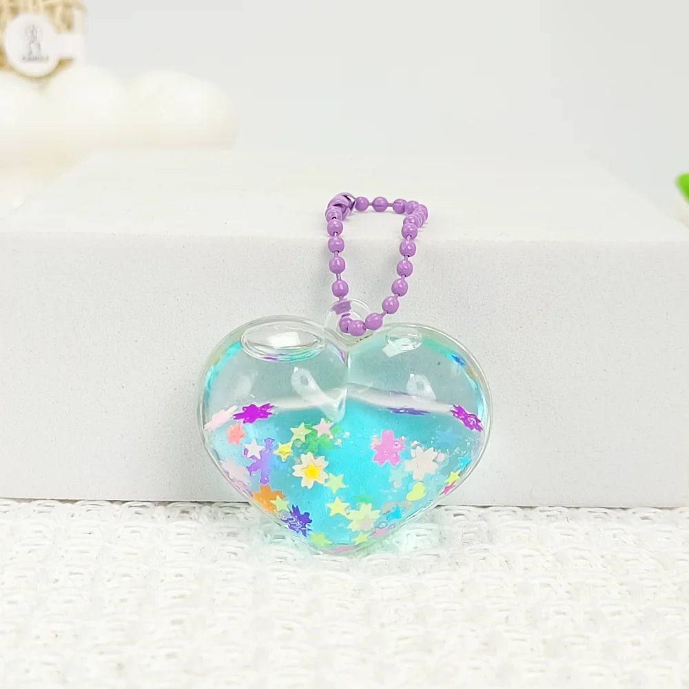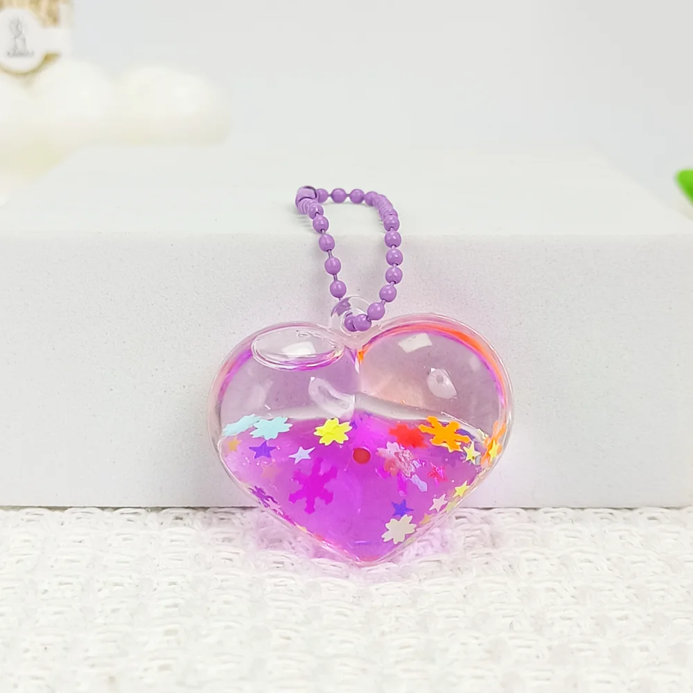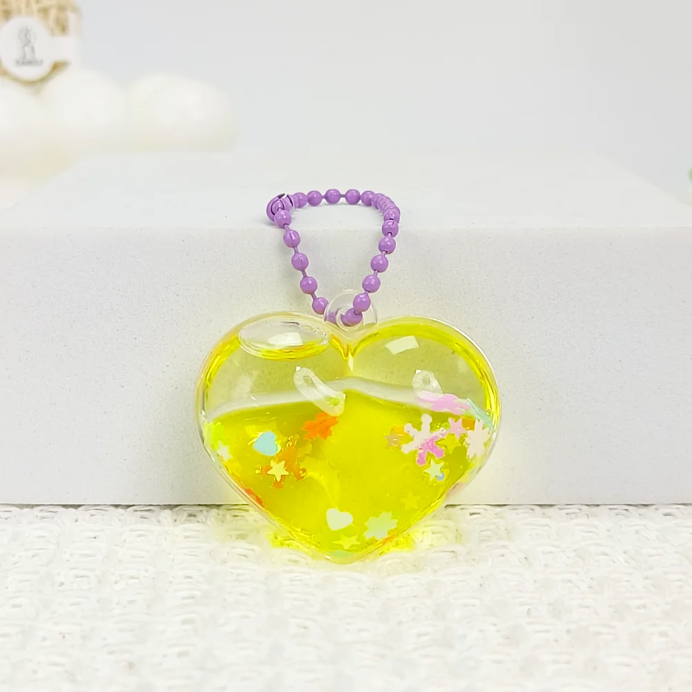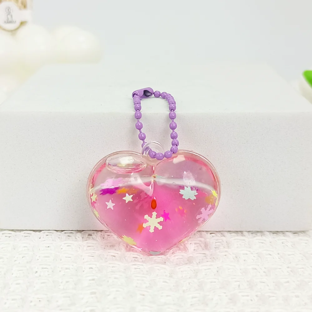 Mini Heart-Shaped Oil-Flow Sand Bottle with Multiple Shapes, Liquid Floating, Glittering Pendant, Oil-Flow Sand Bottle, Backpack Hanger Decorative Piece