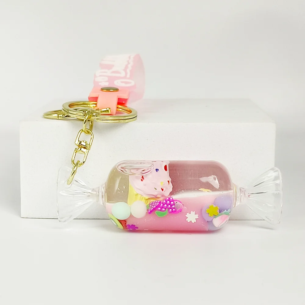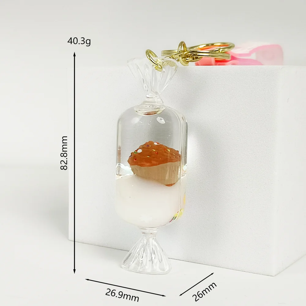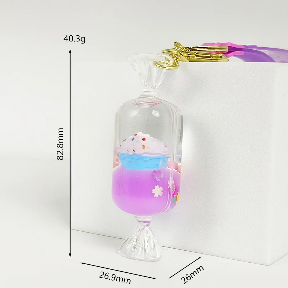 Dynamic sand flow suspension effect, sparkling sequins with mini cake pendant, smoothly flows within the sealed acrylic with liquid, when flipped or shaken, presents an enchanting and eye-catching visual experience.