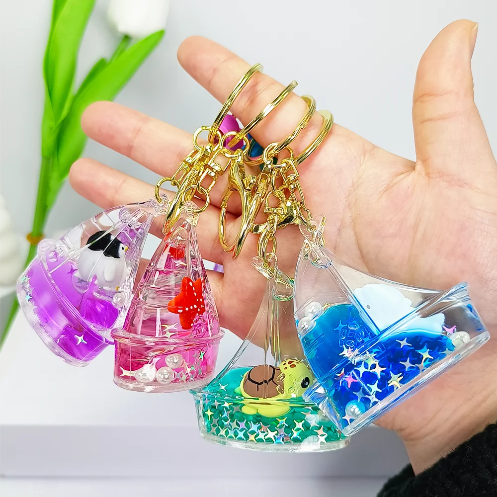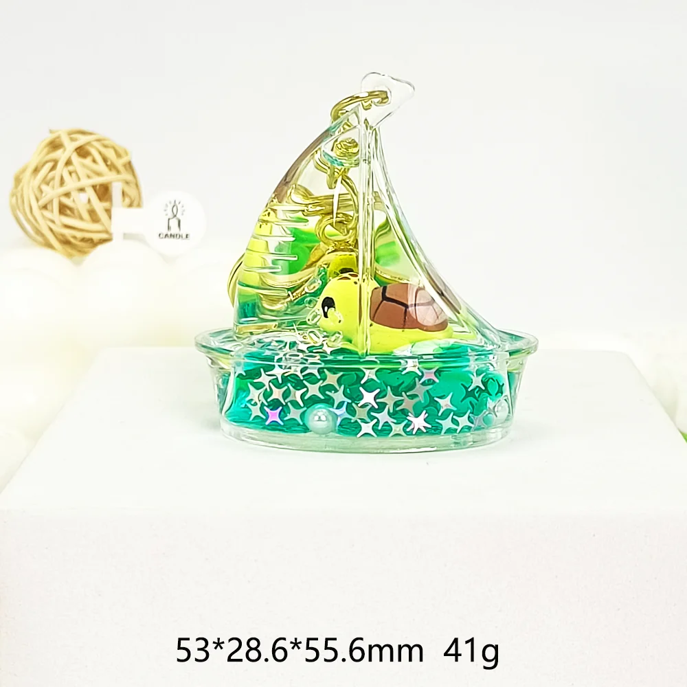 A dynamic sandglass with flowing sand, adorned with sparkling sequins and cute marine life ornaments, floats smoothly in a sealed acrylic liquid. When flipped or shaken, it brings a fun and relaxing visual experience.