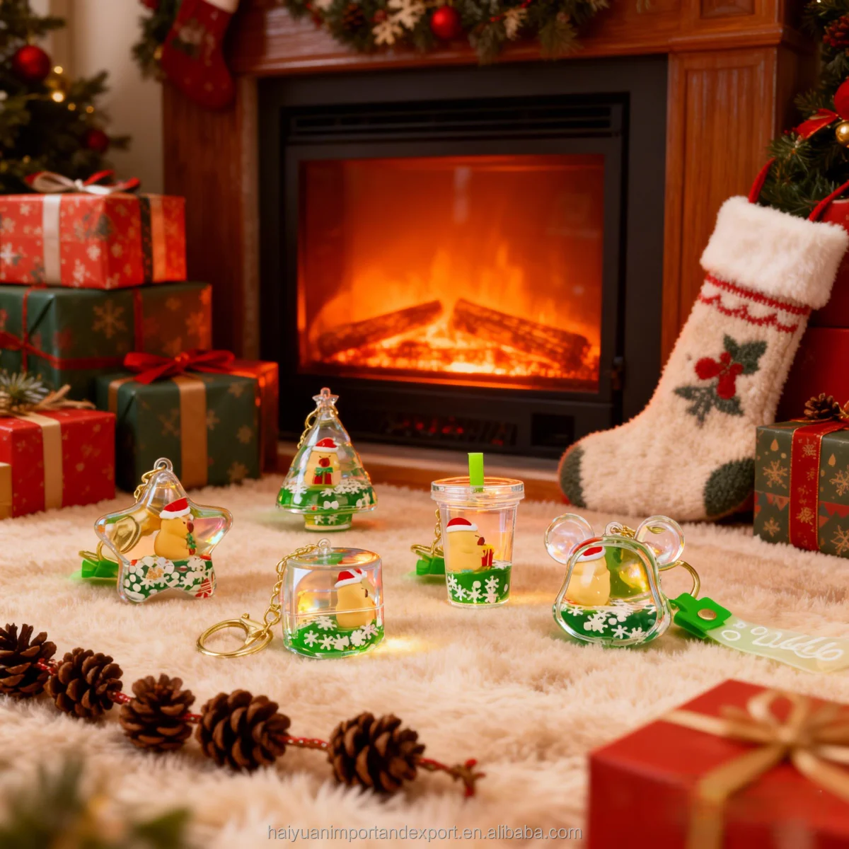 Christmas-themed pygmy hippopotamus: a cute holiday keepsake adorned with festive sequins and sand, exuding a unique charm.