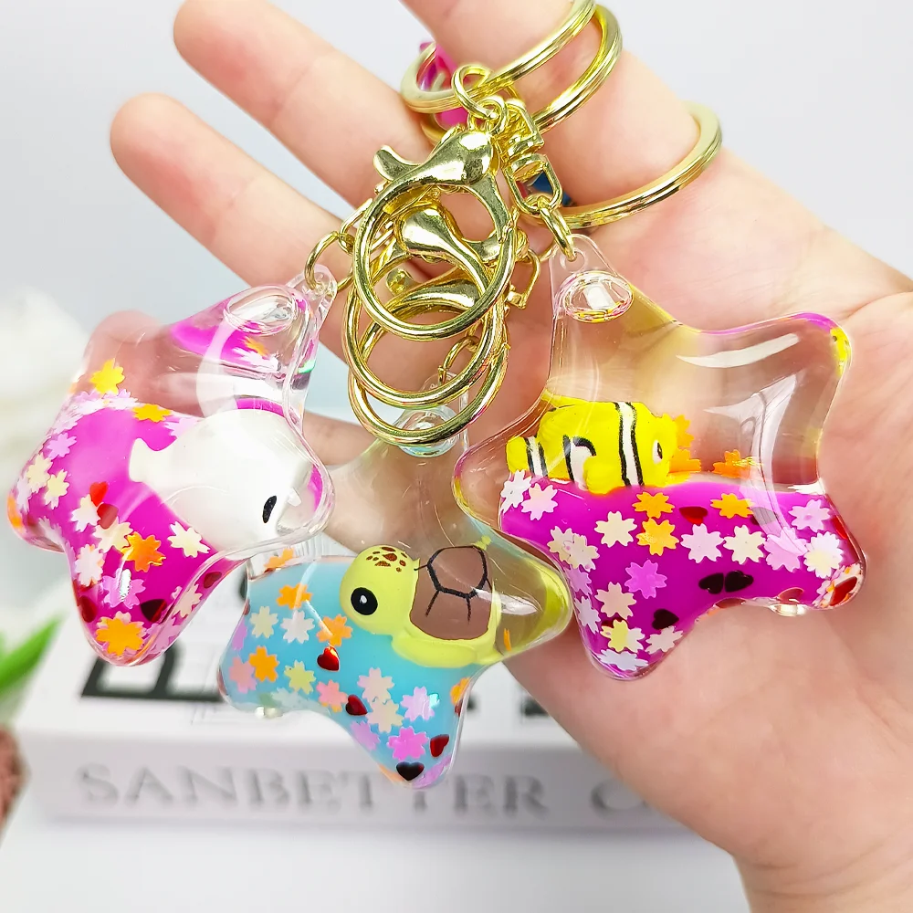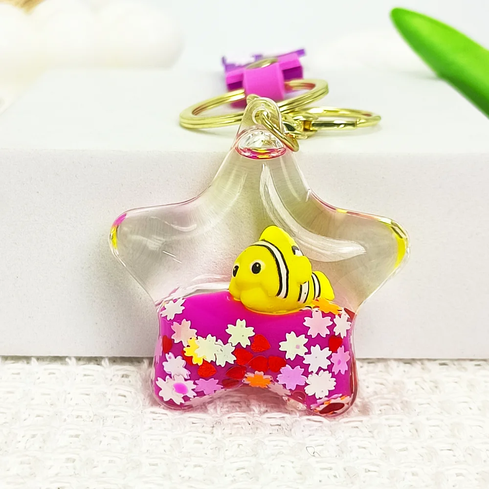 Charming ocean-themed star-shaped design, adorable star-shaped acrylic material, embedded with vivid marine life such as dolphins, clownfish, and turtles, full of beach ambiance, is the perfect choice for ocean and nature enthusiasts.