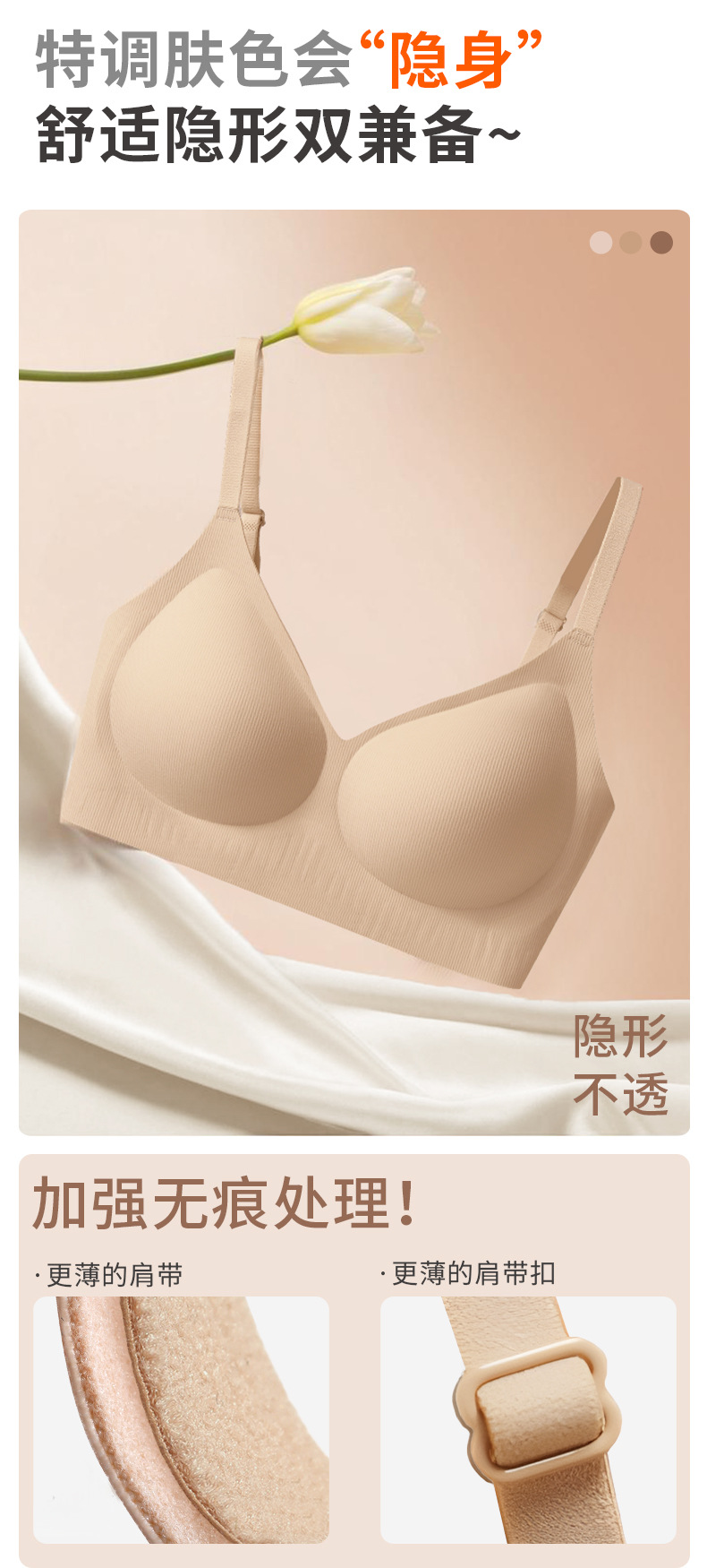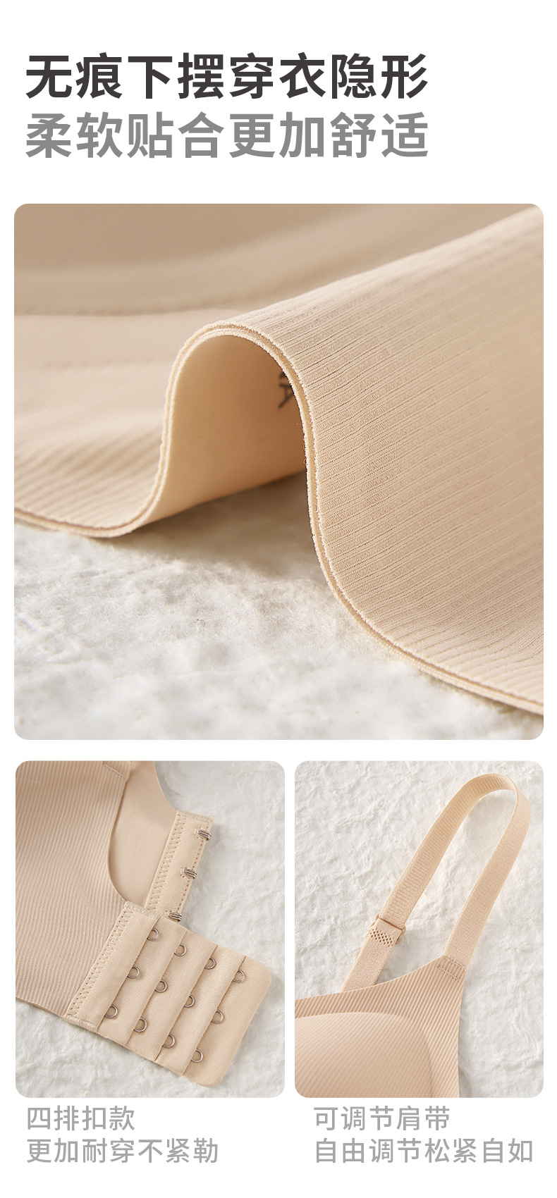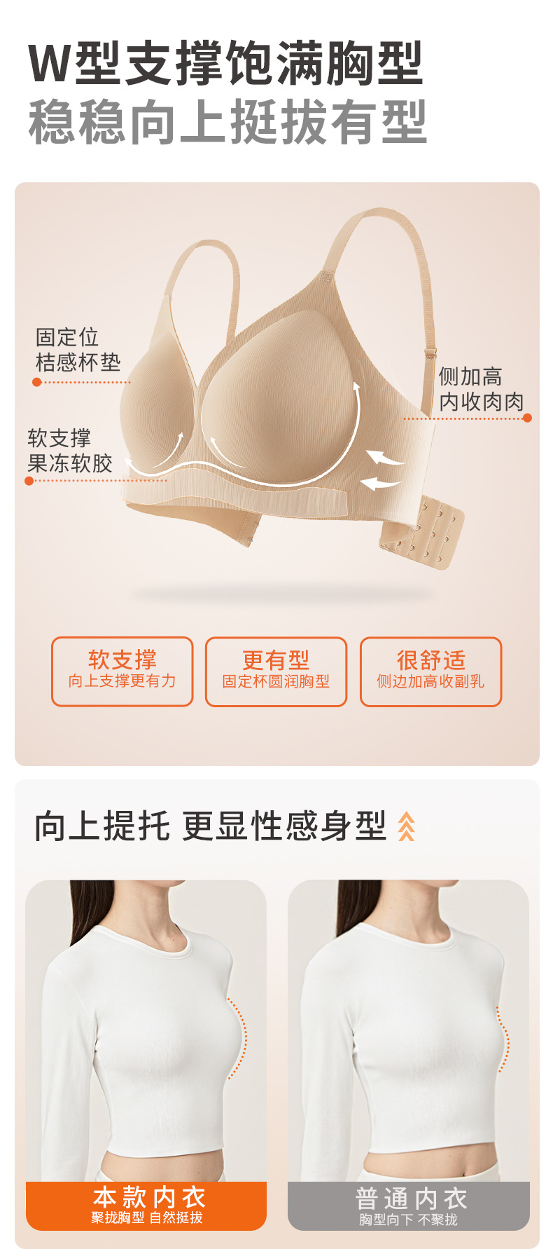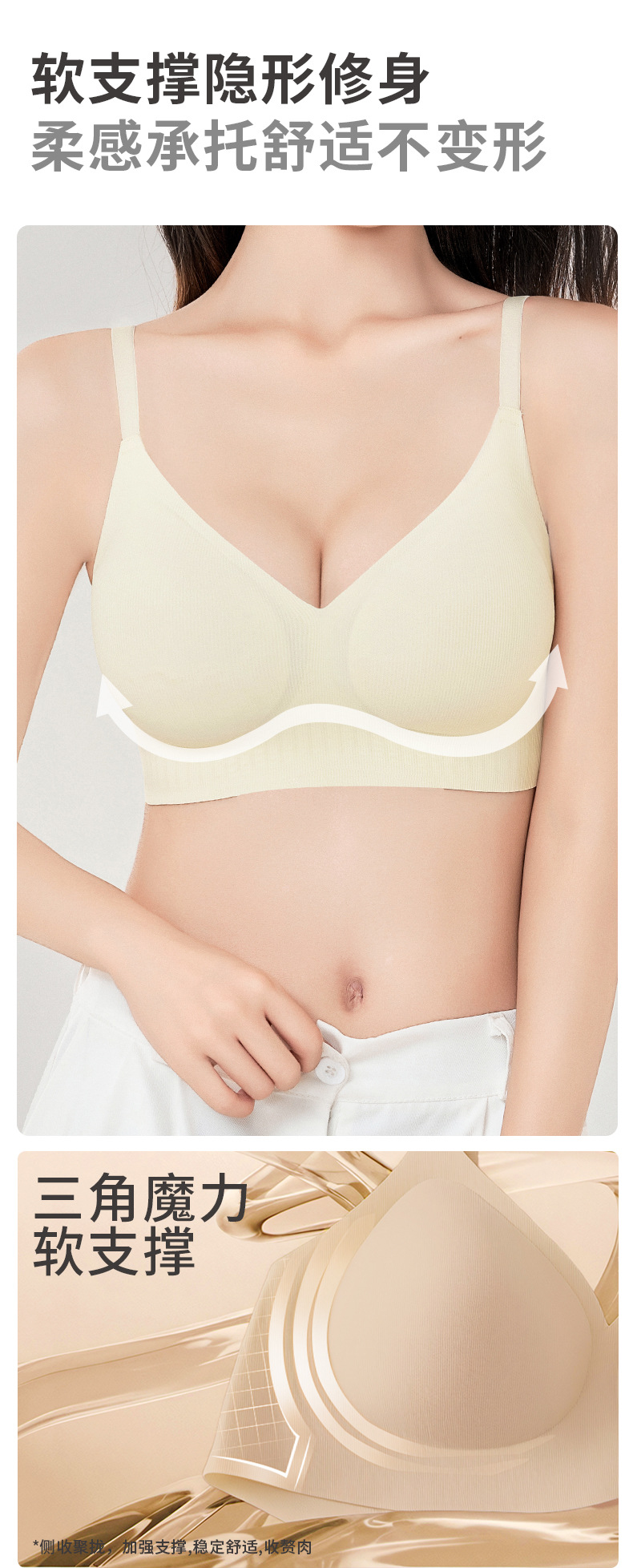 function: gathered, seamless, breathable, upper support, comfortable, breast holding
