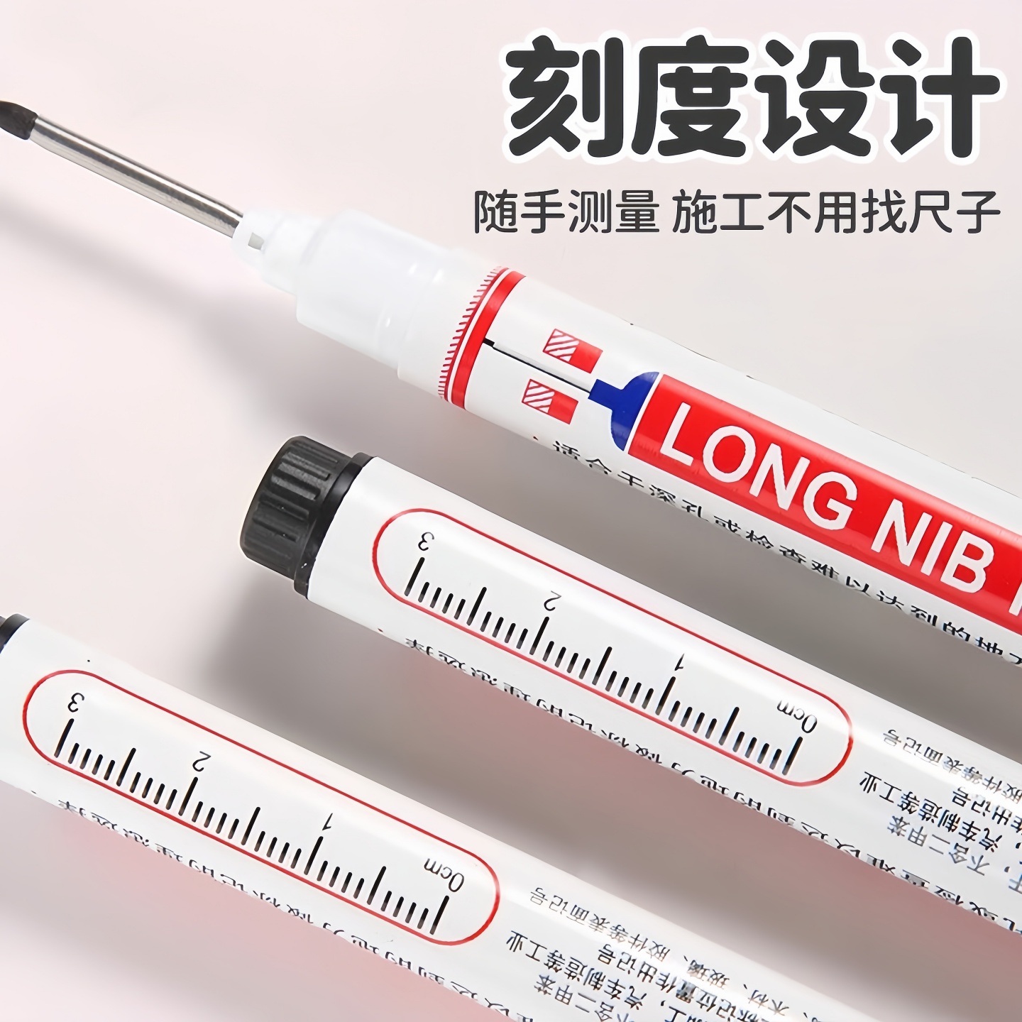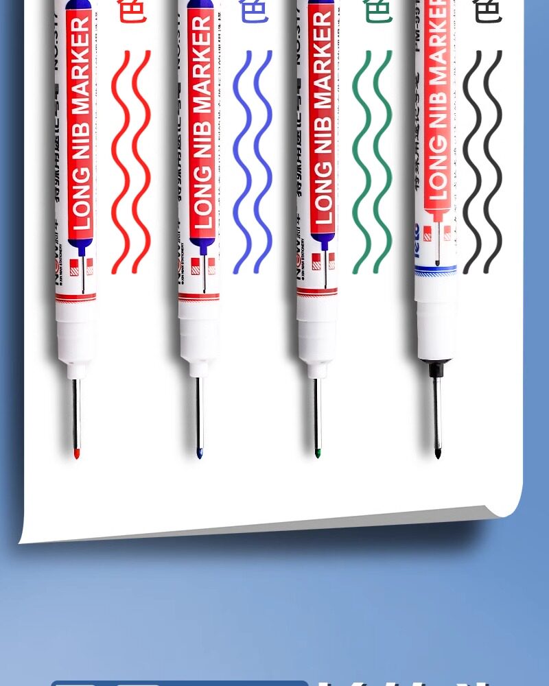 Long-nosed marker with deep hole, oil-resistant, fast-drying, erasable, black, suitable for wood, glass, tile, and decoration wholesale.