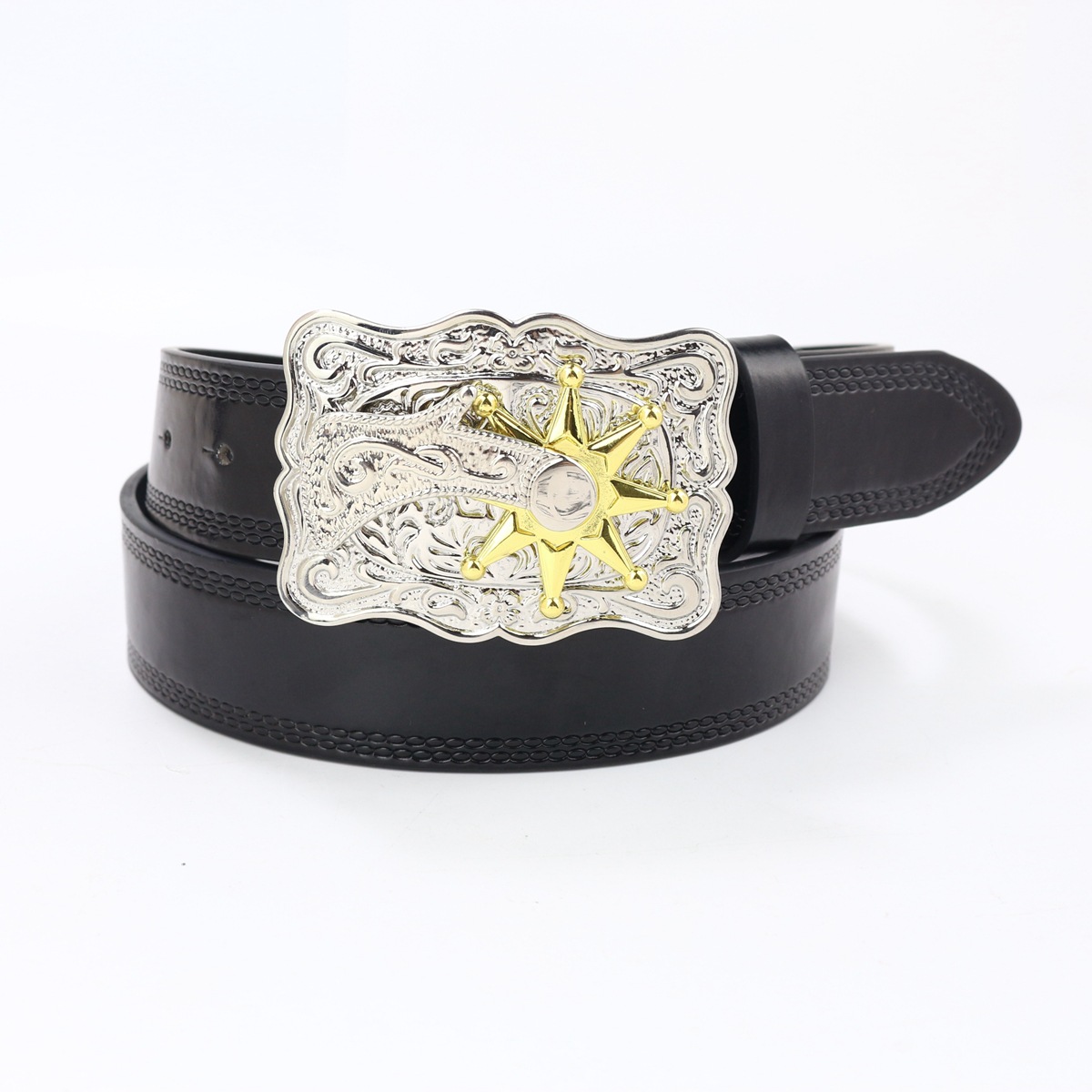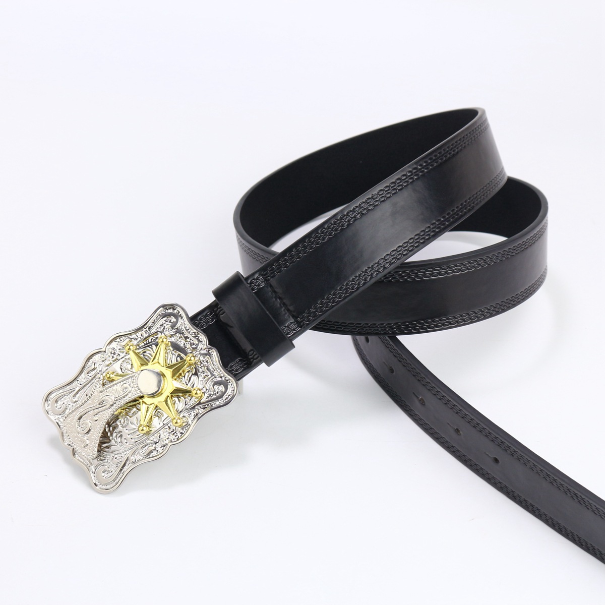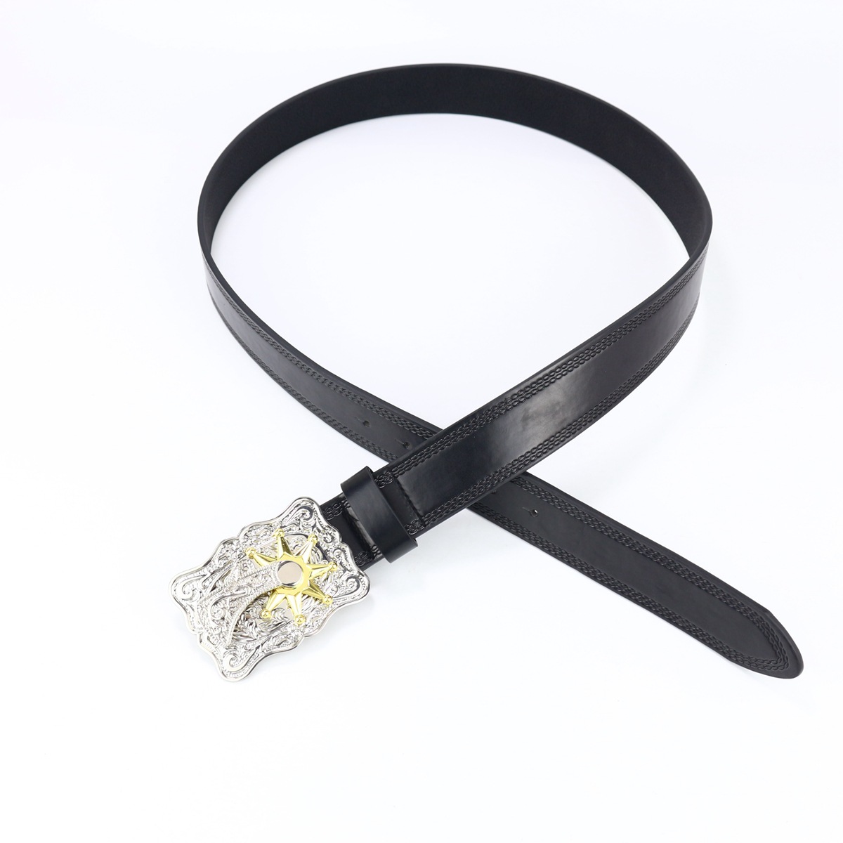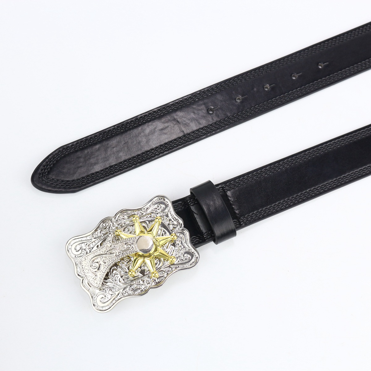 cross-border western cowboy belt crown large plate buckle retro youth retro men's and women's punk leather street belt