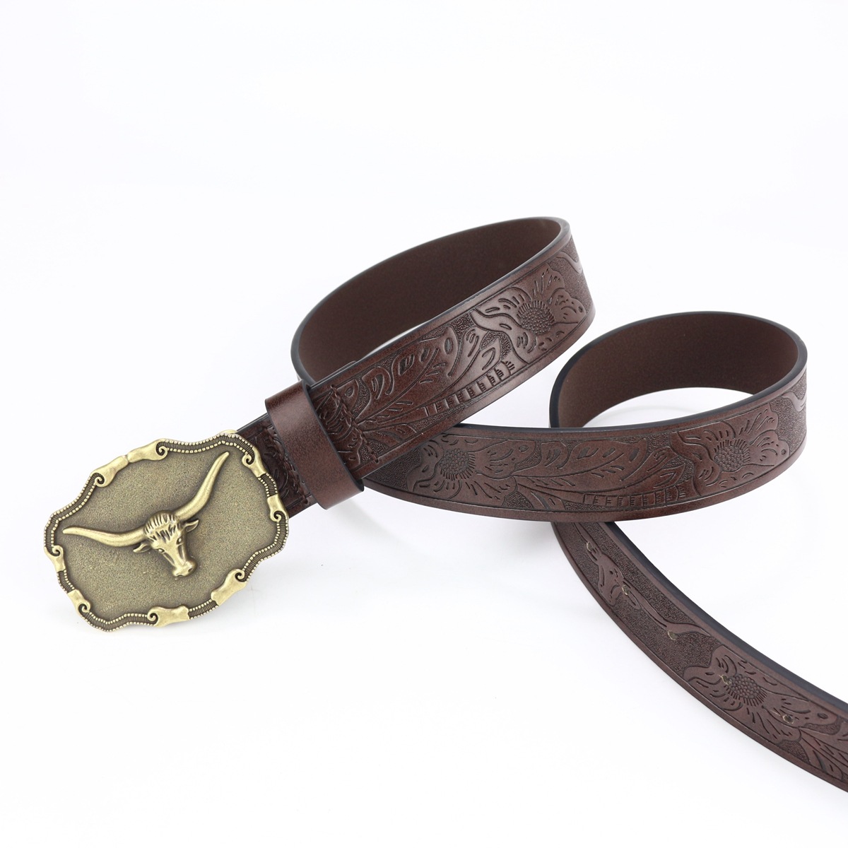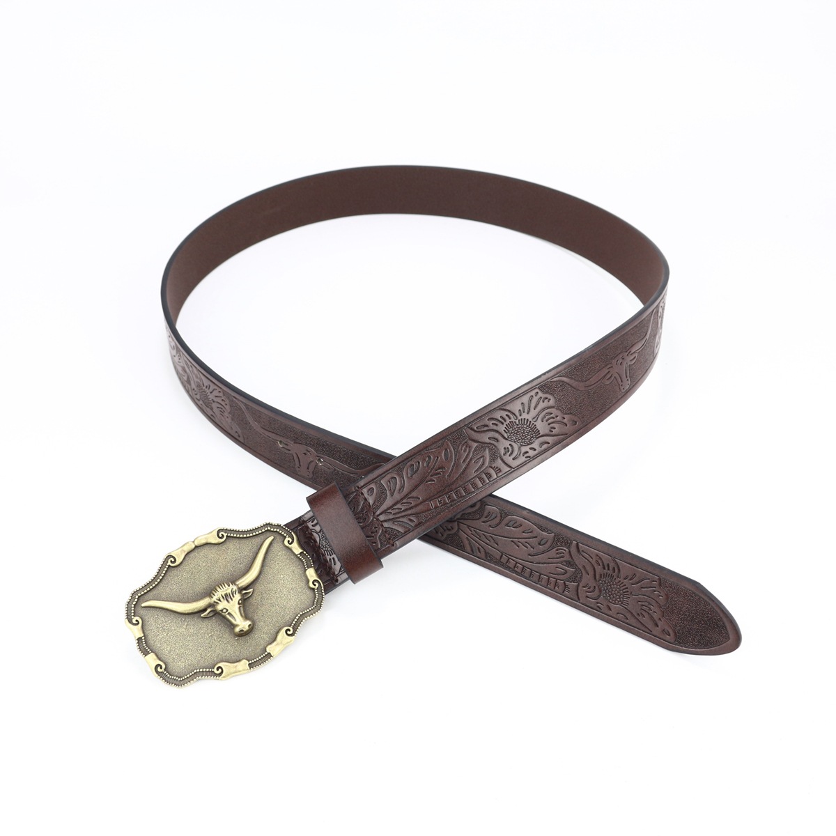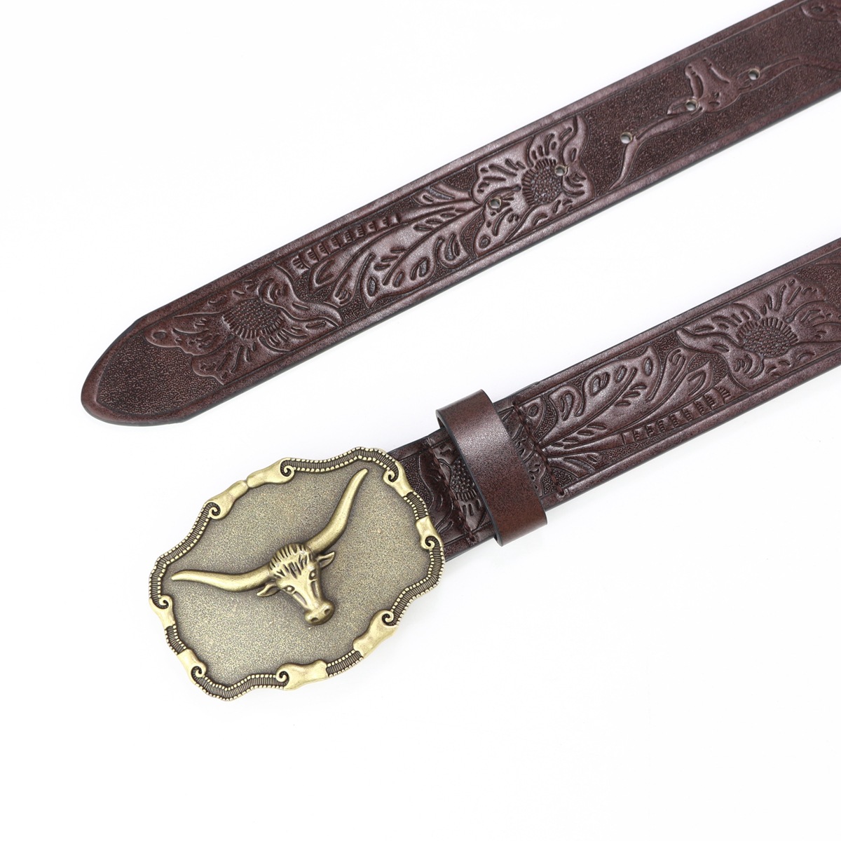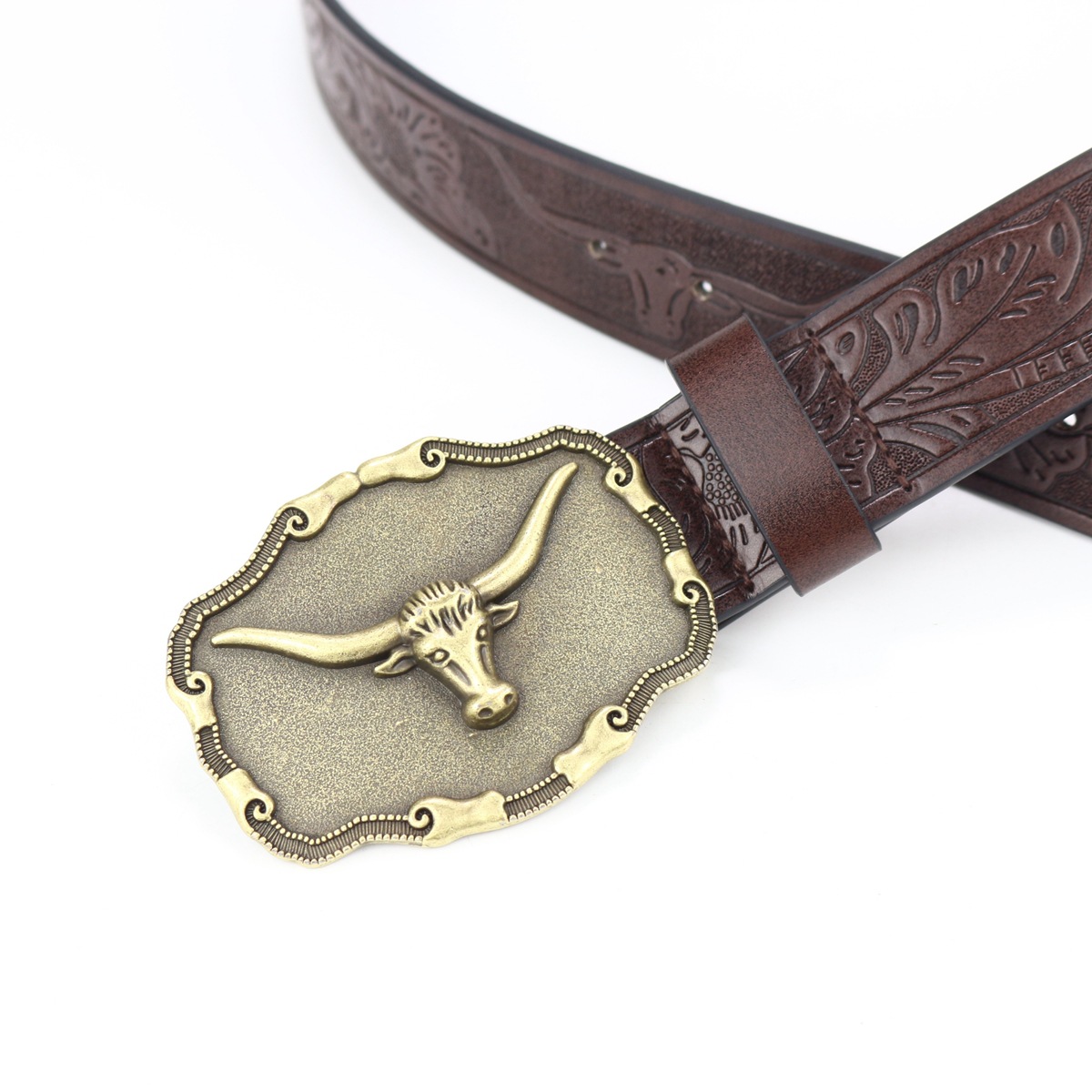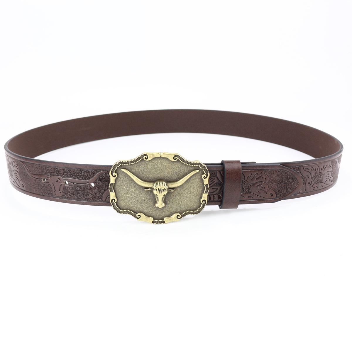 cross-border new arrival western cowboy belt cow head big plate buckle vintage silver young men punk leather fried street belt
