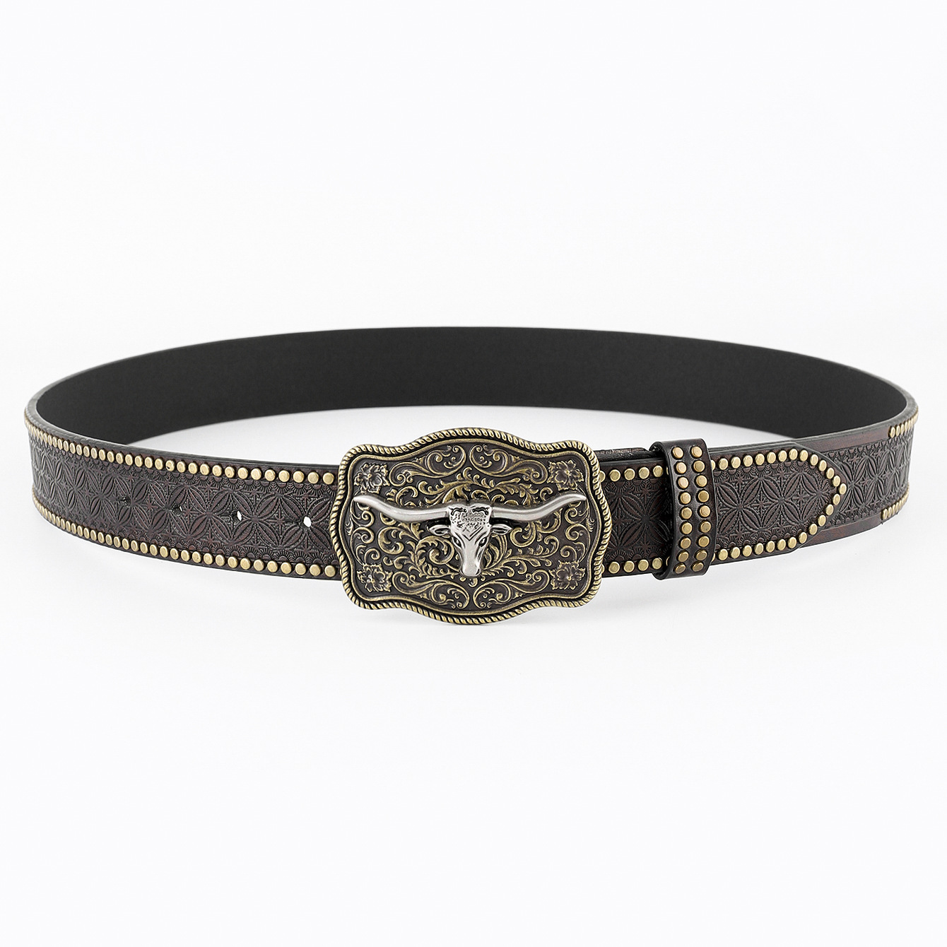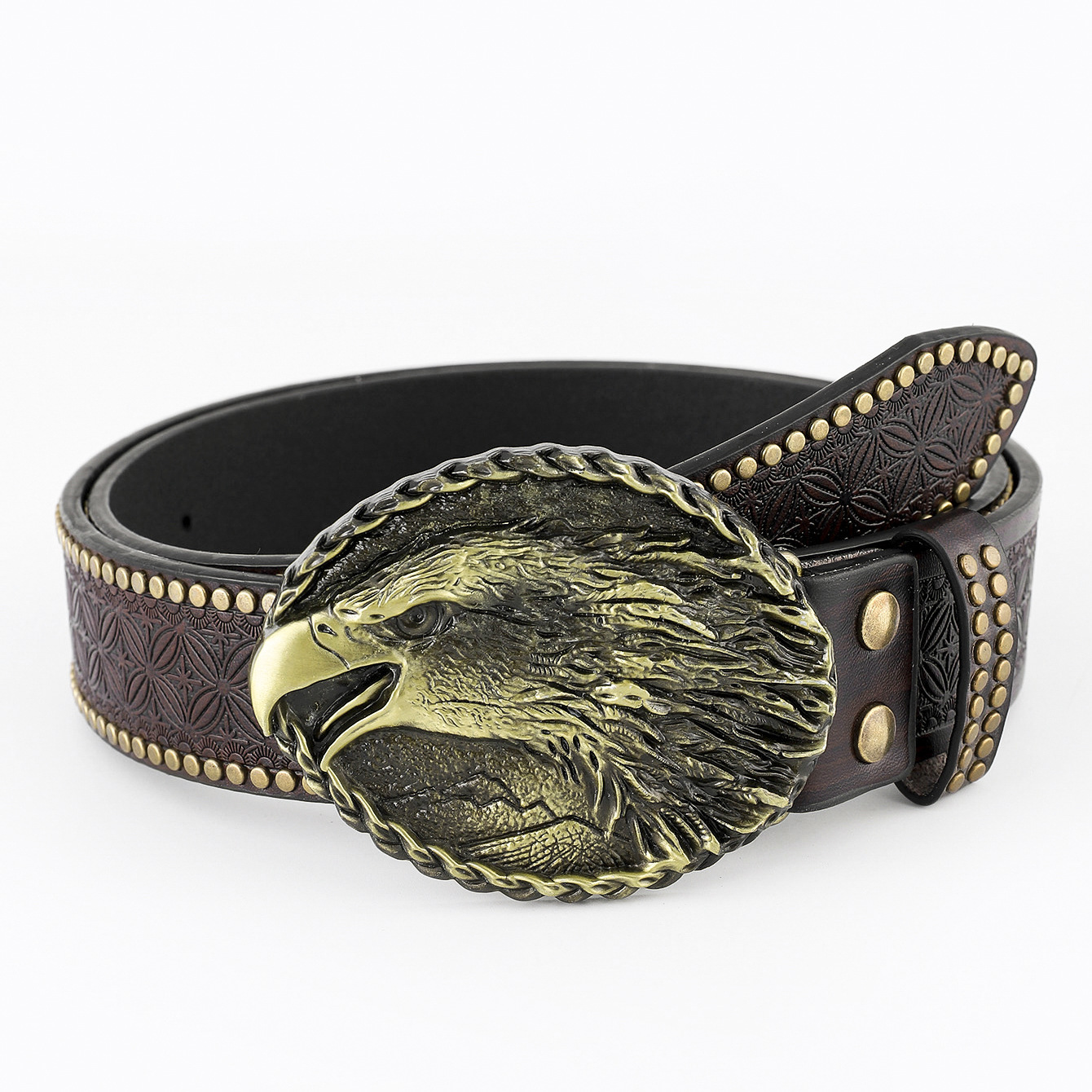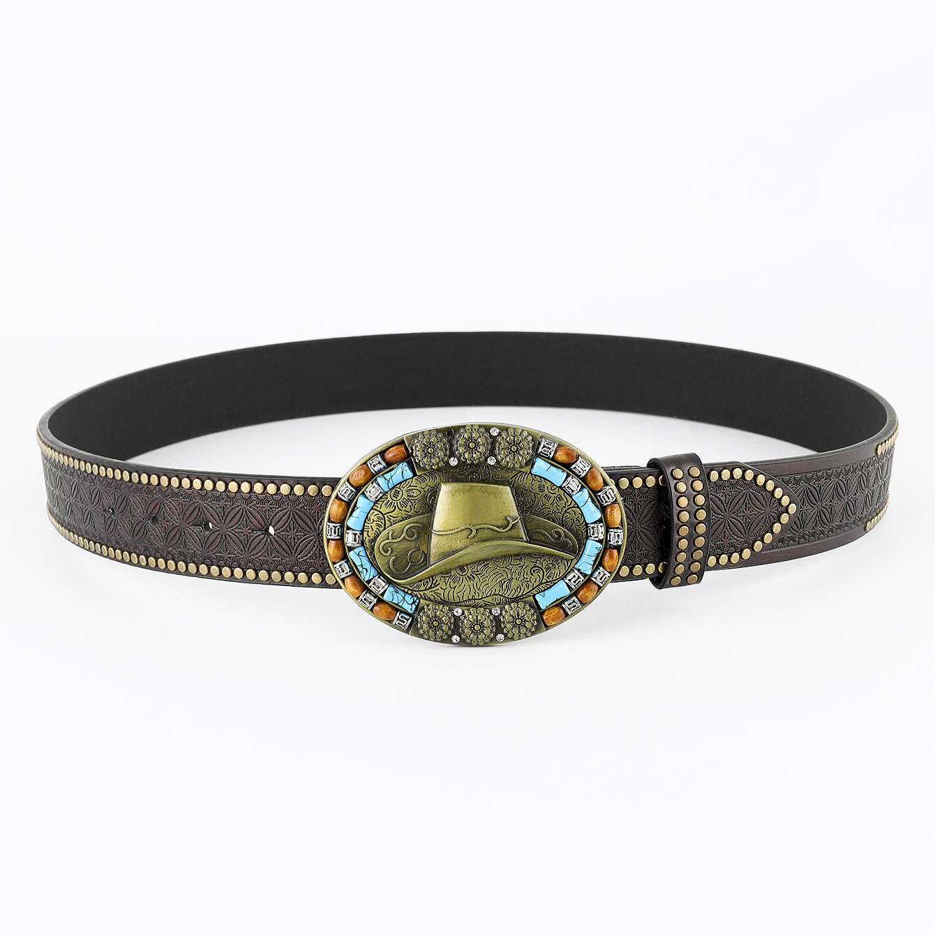 amazon western denim belt carved large plate mouth fashion retro retro men's punk embossed leather waist