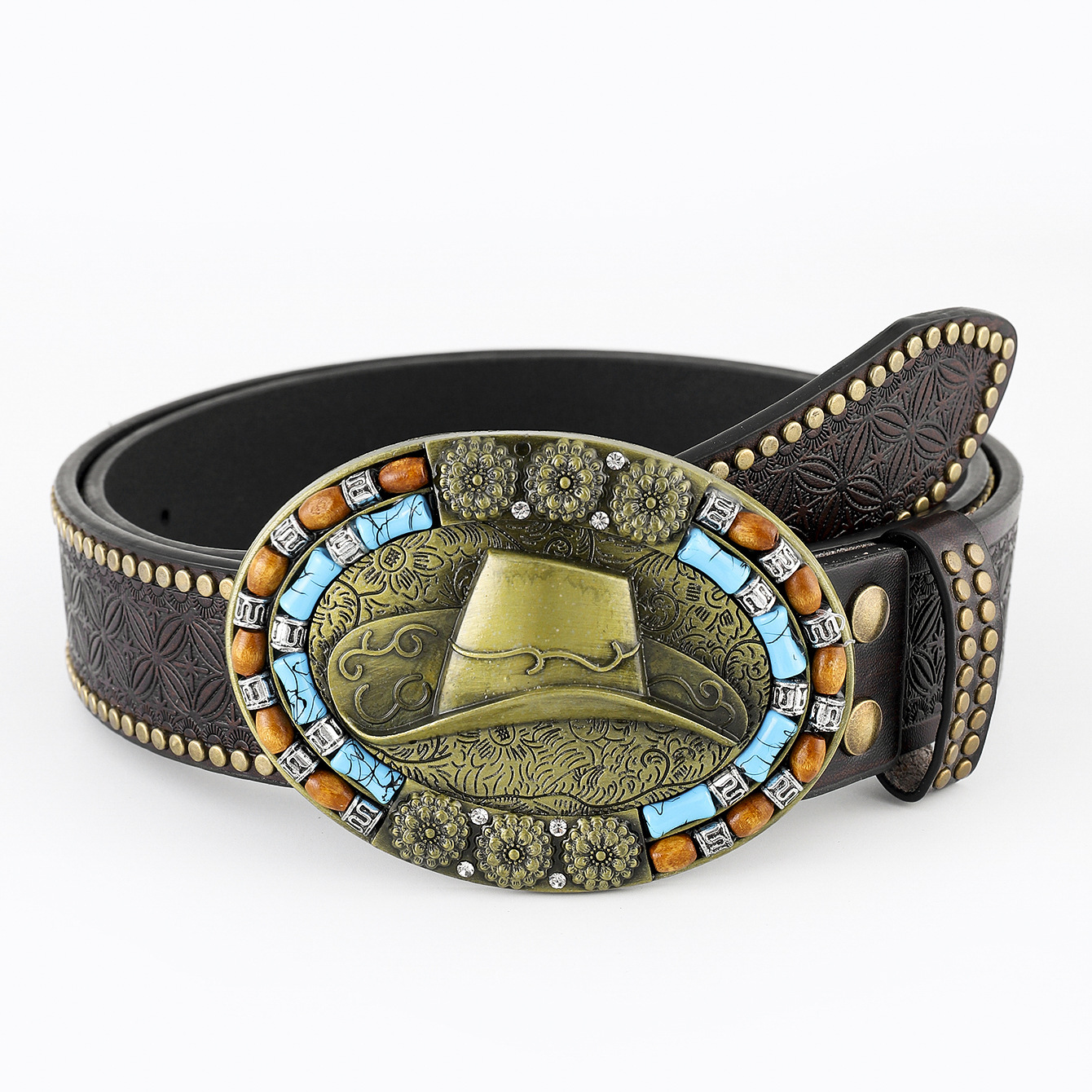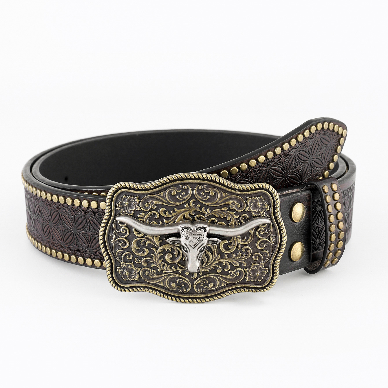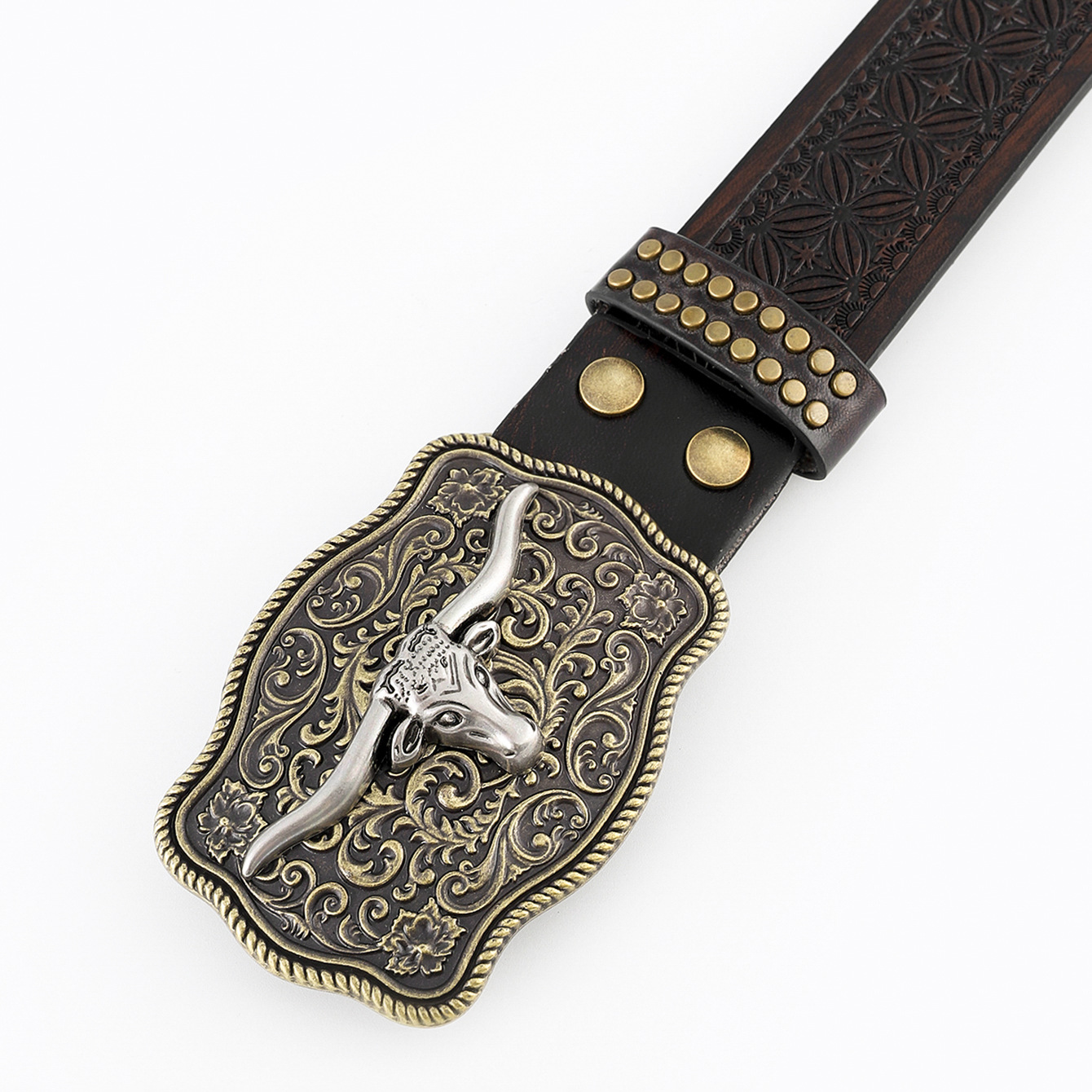 amazon western denim belt carved large plate mouth fashion retro retro men's punk embossed leather waist